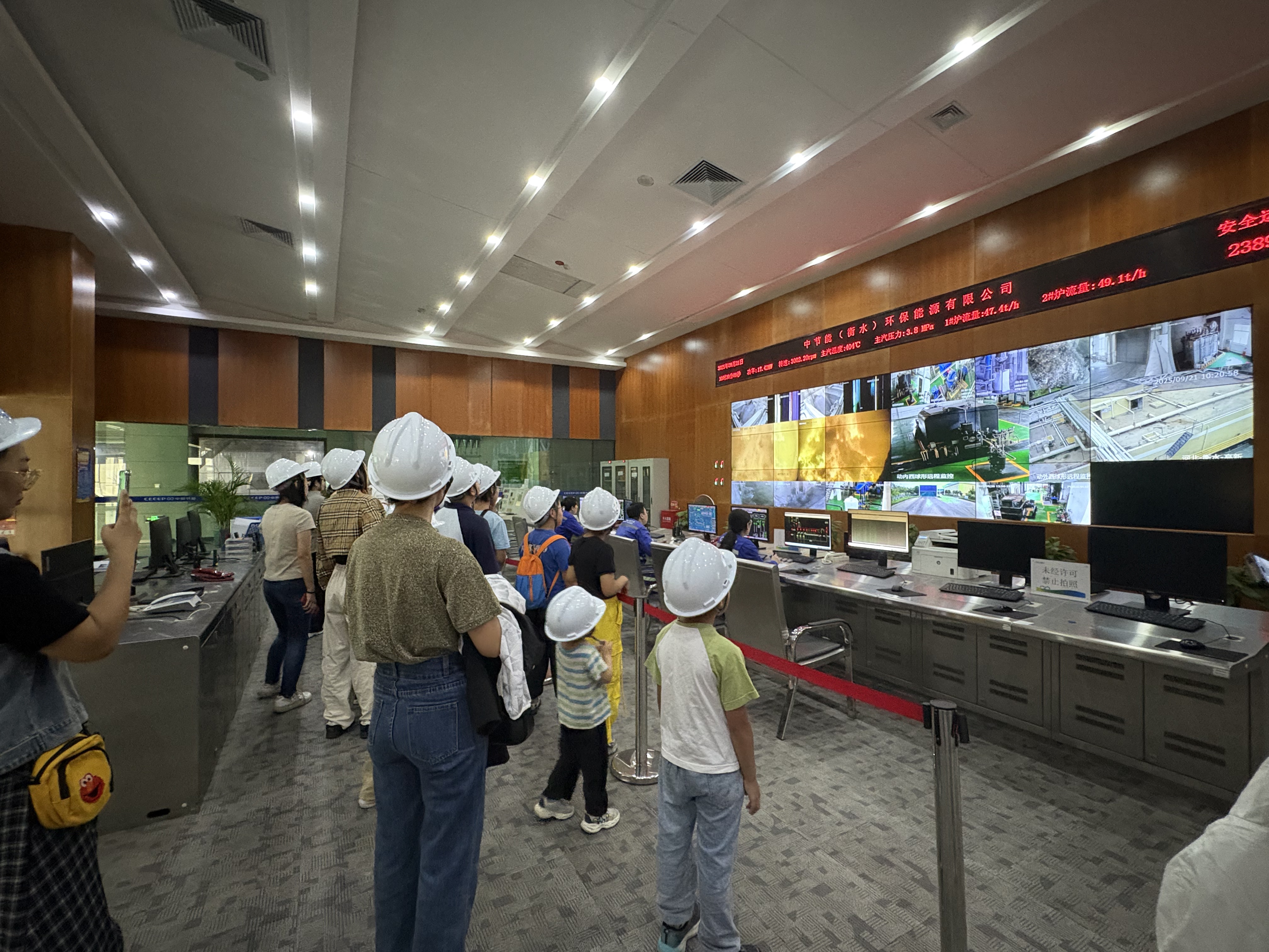 在工作人员带领下,亲子家庭先后探访环保科普馆、垃圾卸料平台、主控室等区域。大家看到生活垃圾从运输到焚烧发电、尾气净化、残渣利用的全流程,打破对垃圾处理设施的 “刻板印象”。“垃圾焚烧温度最高是多少?”“炉渣能做成建材?”面对孩子们的好奇提问,工作人员逐一解答,科普“减量化、无害化、资源化”环保理念。