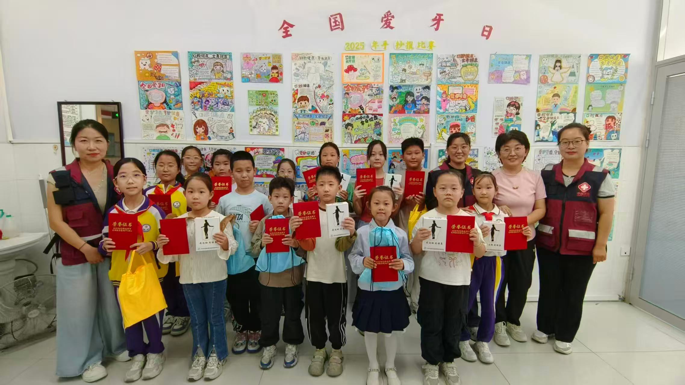 在三年级,疾控中心工作人员借助生动有趣的多媒体课件和逼真牙齿模型,以轻松易懂的语言,揭秘牙齿的结构、龋齿的形成以及日常护齿的关键要点。在四年级的“微笑的画卷”主题手抄报创作大赛中,一幅幅图文并茂、创意十足的作品,不仅展现了孩子们对口腔健康的理解,更传递出他们对健康生活的美好向往。优秀作品在校园集中展出,成为一道亮丽的“护牙风景线”。在五年级,启动“校园健康小卫士”赋能计划。经过选拔,每班1-2名优秀学生接受系统培训,被正式聘任为班级“护牙小导师”。他们纷纷表示,将承担起传播健康知识、示范正确护牙方法的责任,不仅帮助同学,还会把爱牙理念带回家,让健康的种子在校园和家庭中共同发芽。