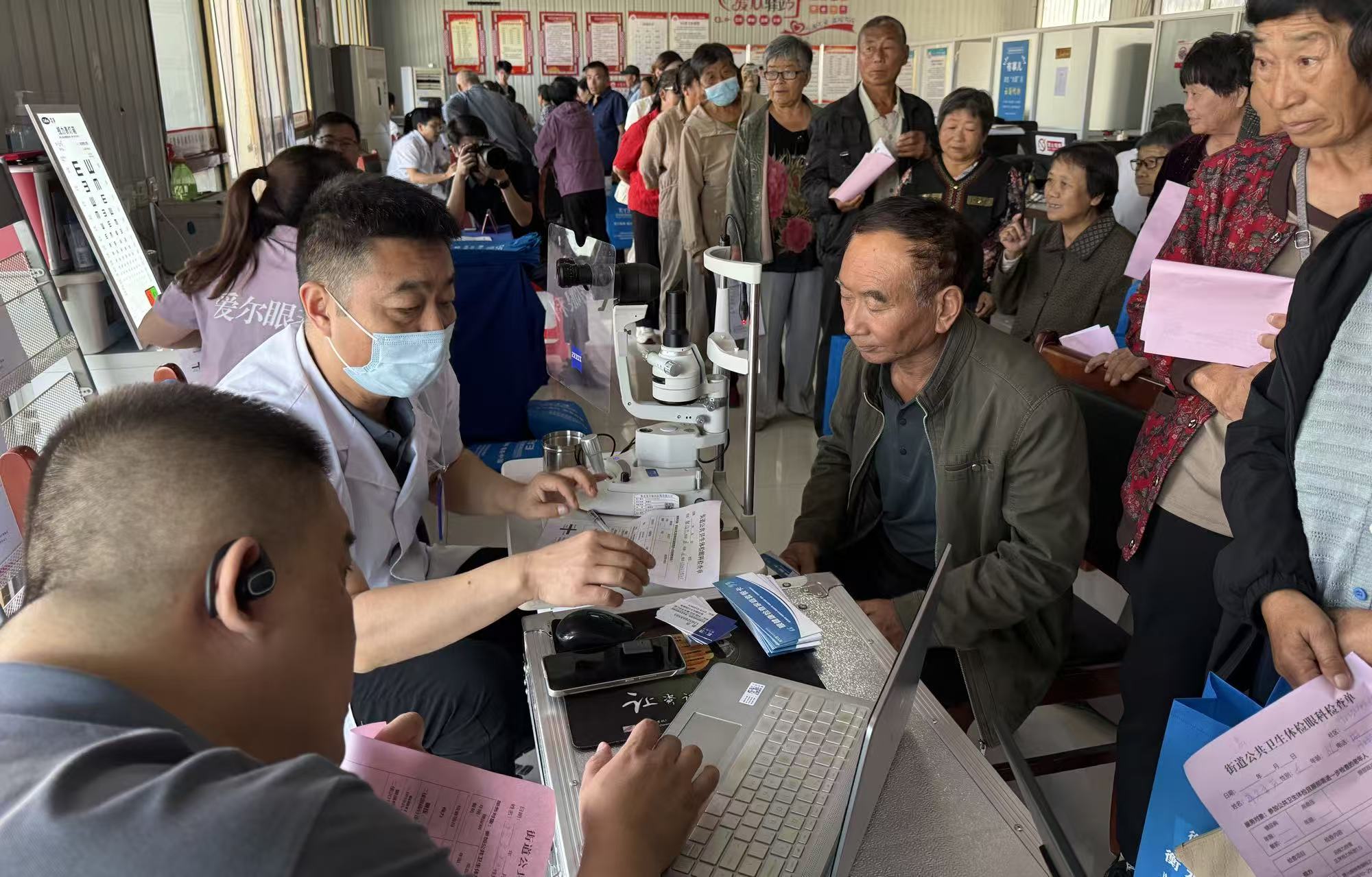 讲座结束后,义诊活动在王集乡行政综合服务大厅火热展开。来自衡水市人民医院、衡水市中医医院、衡水市第二人民医院、北方皮肤病研究所、爱尔眼科等医疗机构的十余名专家及医护人员组成“豪华医疗团”,涵盖骨科、老年科、中医科、推拿康复科、妇科、皮肤科、眼科等多个科室,为村民提供一对一健康咨询、疾病诊断及用药指导服务。