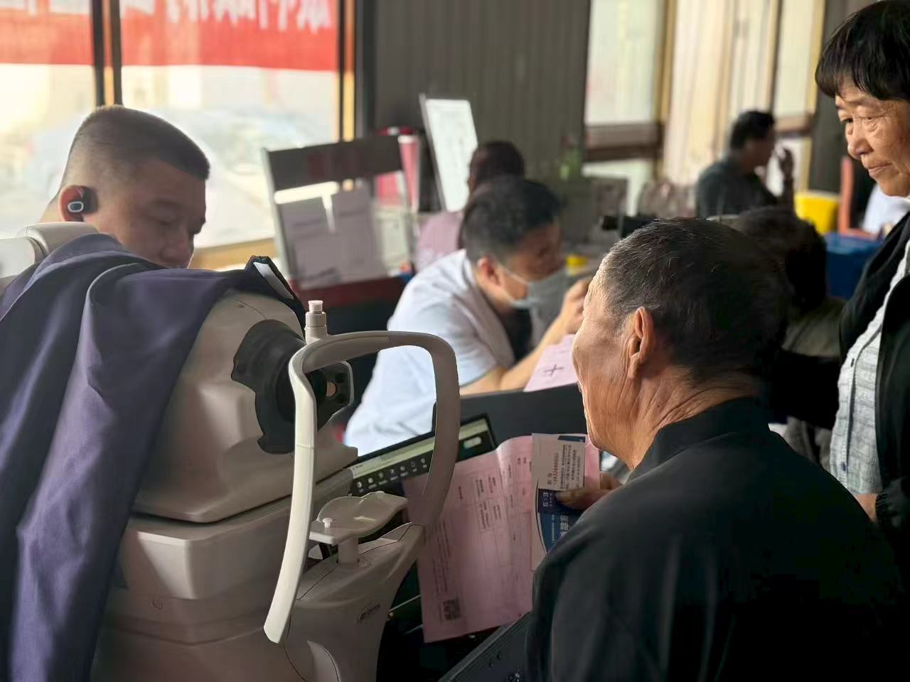 活动现场,专家们耐心询问村民病史,细致检查身体状况,并针对常见病、慢性病提出个性化治疗方案。骨科专家为有骨骼问题的群众细致看片、精准诊断,给出个性化治疗建议;中医科医生不仅为村民把脉问诊,还现场施针,通过针灸疗法为多位手部关节不适、肩颈疼痛的村民缓解症状;皮肤科专家针对村民常见的湿疹、皮炎、癣病等皮肤问题,仔细检查皮肤状况,耐心讲解病因及日常护理方法;眼科专家用专业设备筛查白内障、青光眼等眼疾;妇科医生则重点解答女性健康疑问,为女性村民提供专业的健康指导。王顺庄村村民息来营感慨地说:“不用跑城里,在家门口就能看大专家,医生态度还特别好,还能体验针灸,太方便了!”朴实的话语,道出了众多村民的心声。