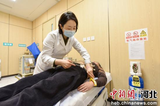 图为廊坊市广阳区新开路街道群乐里社区,社区工作人员为社区居民做腿部护理。 付瑞琪 摄