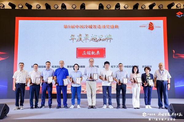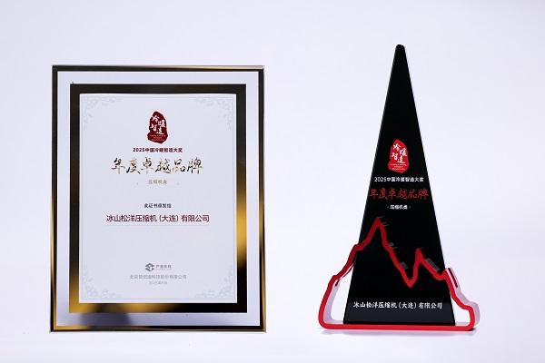 松洋压缩机董事长兼总经理刘玉环、首席营销官李鹏冲受邀出席峰会。会上,松洋压缩机凭借出色的产品性能与品牌影响力,荣获展会重磅奖项——“年度卓越品牌奖”,同时入选2025冷暖百强榜(供应链百强-涡旋压缩机品类)。