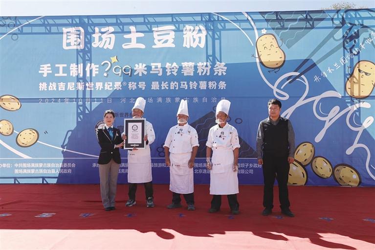 地处内蒙古高原和冀北山地过渡带的围场满族蒙古族自治县,是中国知名的马铃薯产业大县。2024年10月,张殿武等人因用传统纯手工“漏粉”工艺创下“最长的马铃薯粉条”吉尼斯世界纪录而受到外媒关注。