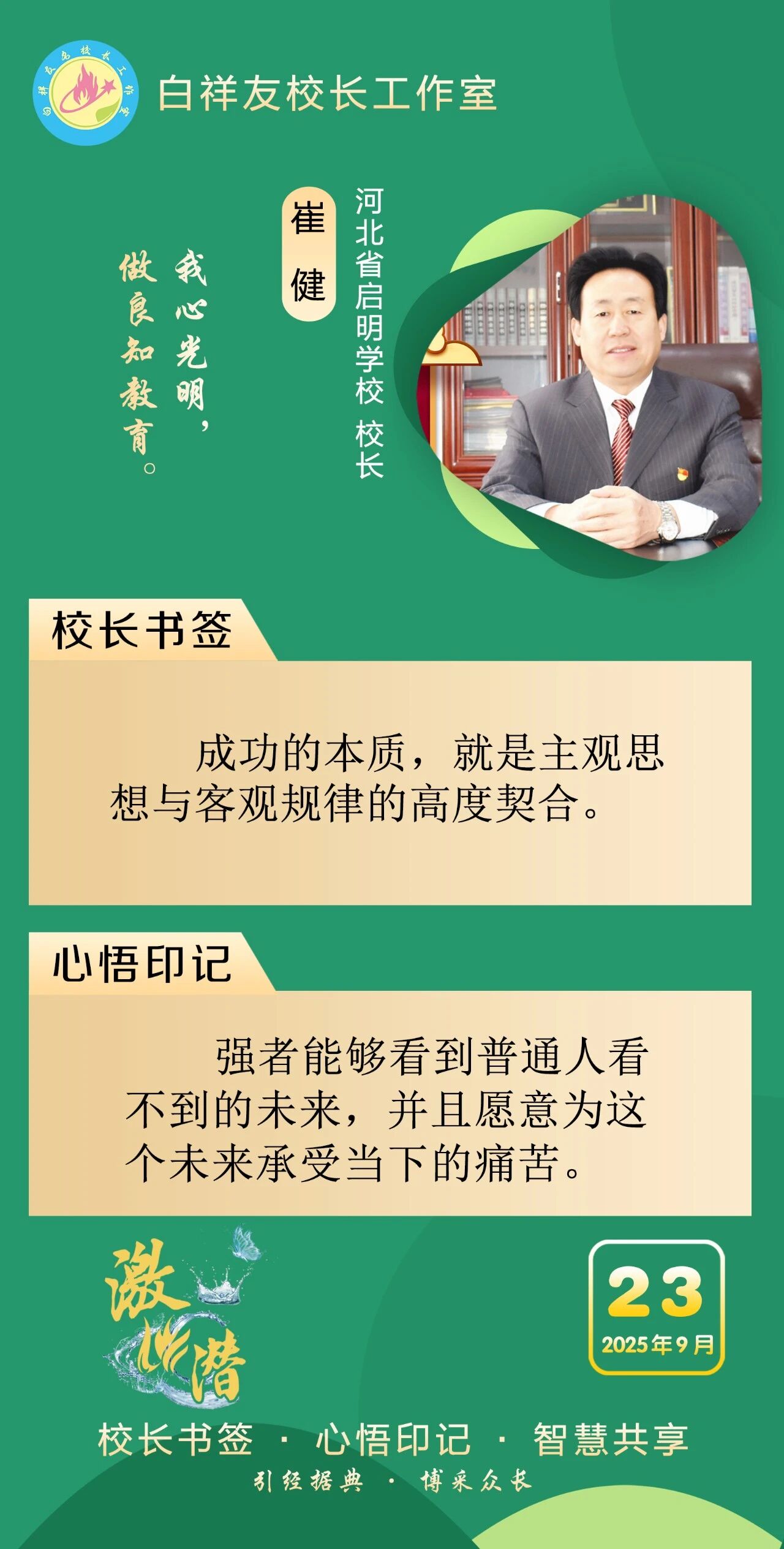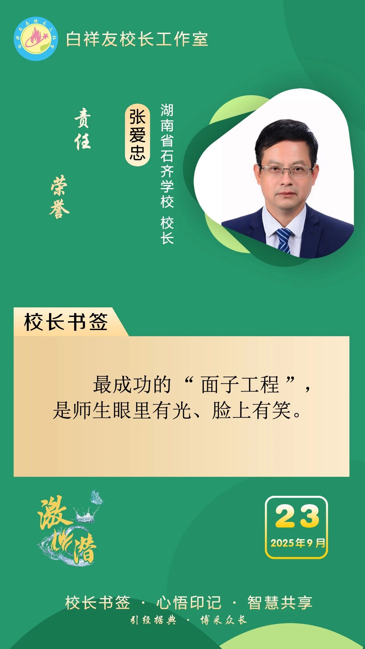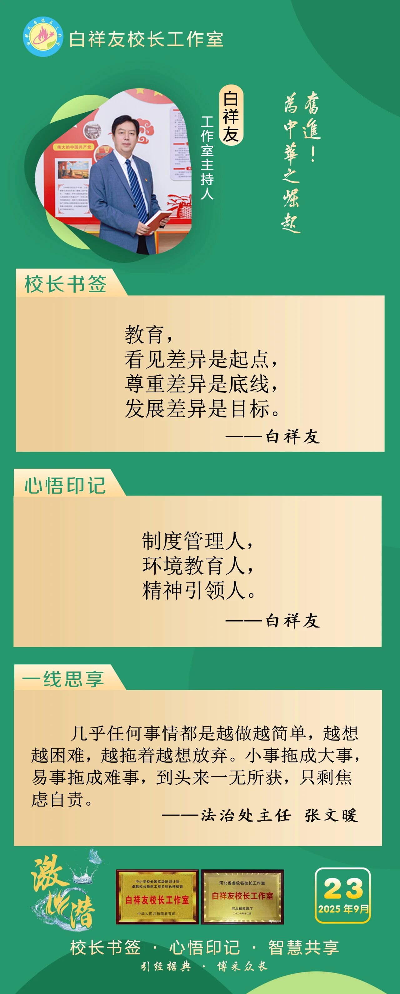 “白祥友校长工作室”成立于2019年4月,是教育部“国培计划”中小学名校长领航工程、河北省首批名校长工作室,目前省内外成员校59所。工作室坚持“资源共享、智慧共融、互助共赢”理念,已成为思想碰撞的交流场,资源共享的品牌站,成果展示的辐射源。 点赞 +1 微博 微信 我要评论 发布 相关推荐 巾帼筑梦绽芳华 向光而行建新功 河北衡水中学举办第十八届“杰出女教师”表彰大会 资讯速递 4天前 衡水十三中学子这样追“锋”! 教育大观 03-06 马力加载,衡水十三中学子元气回归! 教育大观 03-05 青春不 “宅” 家!跟着衡水十三中学子“趣”过寒假 教育大观 03-02 看衡水十三中学习的新年全家福 教育大观 02-27 “新春氛围组”就位,看衡水十三中学子解锁红火中国年! 教育大观 02-24 激潜铸魂践初心 奋进逐梦启新程————衡水市第十三中学2025年办学成果回眸 教育大观 02-11 字里行间藏着最动人的成长——衡水十三中学子走进特教学校 教育大观 02-05 热门 一天 三天 一周 1 衡水气象科普走进政务大厅 为世界气象日预热 2 衡水市区宝云公园:修剪养护已完工 静待花开映日红 3 为思想“充电” 为幸福“加油” 武邑县总工会举办女职工主题讲座 4 把“最活跃地带”打造成“最坚强阵地” 衡水以三大抓手破题新就业群体党建 5 衡水市环卫中心开展便道冲洗专项行动 为城市环境“洗颜换妆” 6 衡水市故城县抢抓农时全力保障春灌用水 7 今年衡水将完成200户特殊困难老年人家庭适老化改造 8 衡水发布2月份食品安全“红黑榜” 194家生产经营主体上榜 9 枣强:植绿护绿正当时 多彩活动共筑生态家园 10 衡水阜城:春回大地农事忙 1 守护安全 畅通消费 衡水市2026年“3·15国际消费者权益日”系列活动启动 2 人勤春来早 春管正当时——衡水市扎实推进春季农业生产纪实 3 【新闻发布】衡水发布2025年消费维权“成绩单”——12315热线受理投诉按时办结率100% 4 衡水全力加强麦田春管夯实夏粮丰收基础 5 衡水市工商业联合会(总商会)第七次代表大会召开 6 【新闻发布】每人每月最高800元 衡水向中度以上失能老年人发放养老服务消费补贴 7 【乡村行 看振兴】棚室轮作种植 果蔬四季“生金” ——看董师傅如何算好“增收账” 8 武强县开展“3・15”金融消费者权益保护宣传活动 9 气温回暖年货干果易霉变 衡水市人民医院消化内科医生提醒:出现这三种情况切勿食用 10 河北衡水:湖城春景入画来 1 《中华人民共和国献血法》首次修订——这些变化和每位献血者有关 2 春回大地寻野趣!衡水市民踏青挖野菜 安全尝鲜需谨记 3 衡水籍运动员刘晓彬米兰冬残奥会上夺银 4 景县举办庆“三八”国际妇女节文艺汇演 5 “巾帼芳华 为爱赴约” 衡水市总工会举办青年职工相亲交友活动 6 首金诞生!衡水健儿省运会冰雪赛场勇创佳绩 7 一场制造业的“数字春雨”——衡水市景县优化营商环境一线探访 8 书香润初心 玫瑰绽芳华 市总工会举办主题读书分享会 9 国防教育进校园 点燃青春报国志 我市军事机关送课下基层活动在衡水二中启动 10 春风送岗暖民心 衡水故城县举办残疾人专场招聘会 广告 广告 广告 24小时 1 提升消费品质|衡水移动多维度开展“3·15”主题系列活动 2 海报系列||早安衡水 3 社区“摆摊”讲防骗 武邑居民家门口学到“3·15”维权硬知识 4 燃气有管家 安全进万家 5 学习笔记丨两会三到团组,习近平强调了这些事 6 金色相框|习近平2026年两会时间 7 感恩奋进 双争有我丨河北雄安保障房安居工程有限公司:贴心服务,守护疏解人员安居梦 8 雄安新区“雄才卡”发卡量超1.7万张 9 全国两会·代表委员说丨全国政协委员齐向东:雄安新区正成为新时代的创新高地和创业热土 10 央视《焦点访谈》·跟着总书记上两会丨河北代表裴红霞:让学生全面了解和认识中国式现代化建设