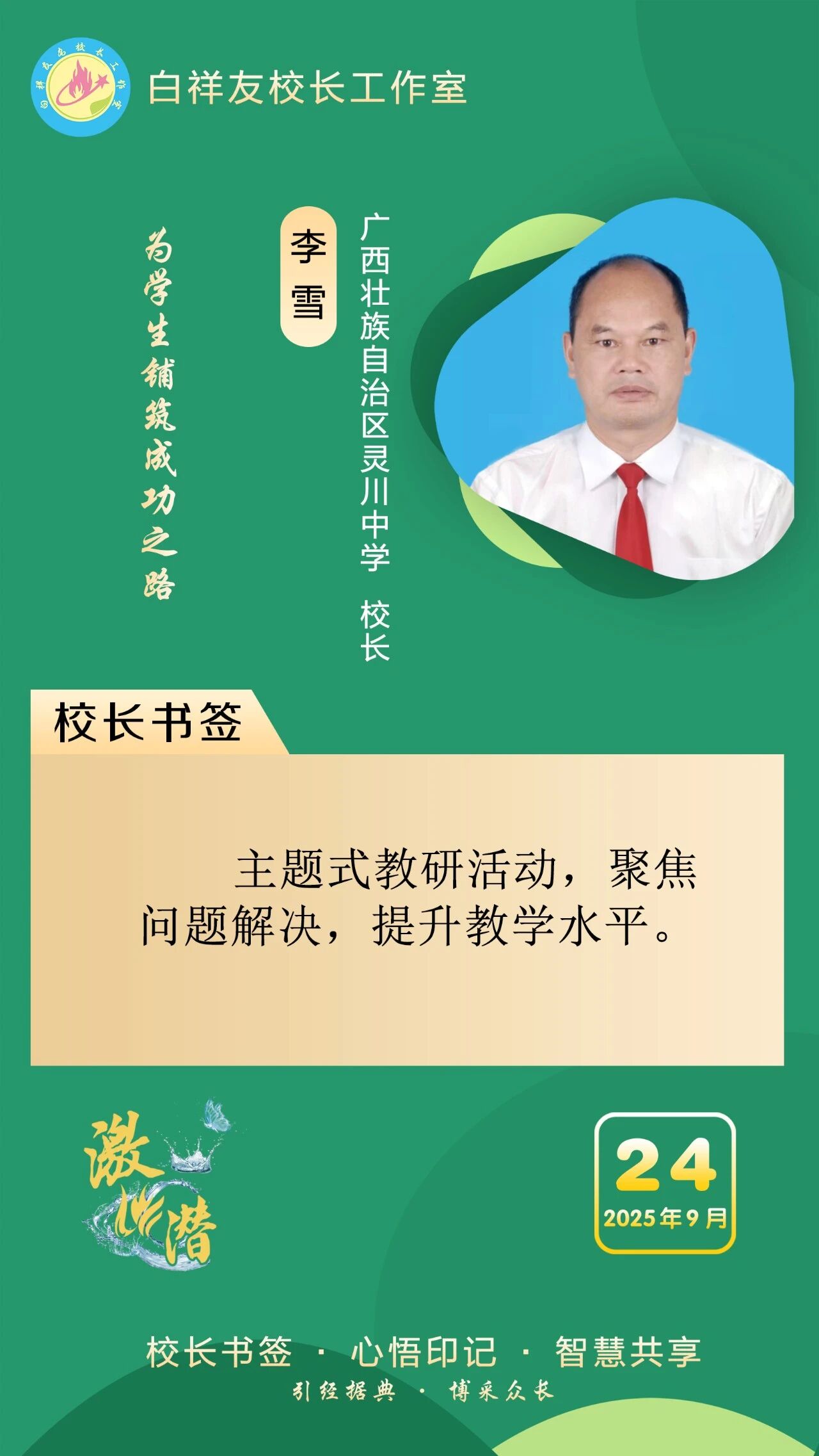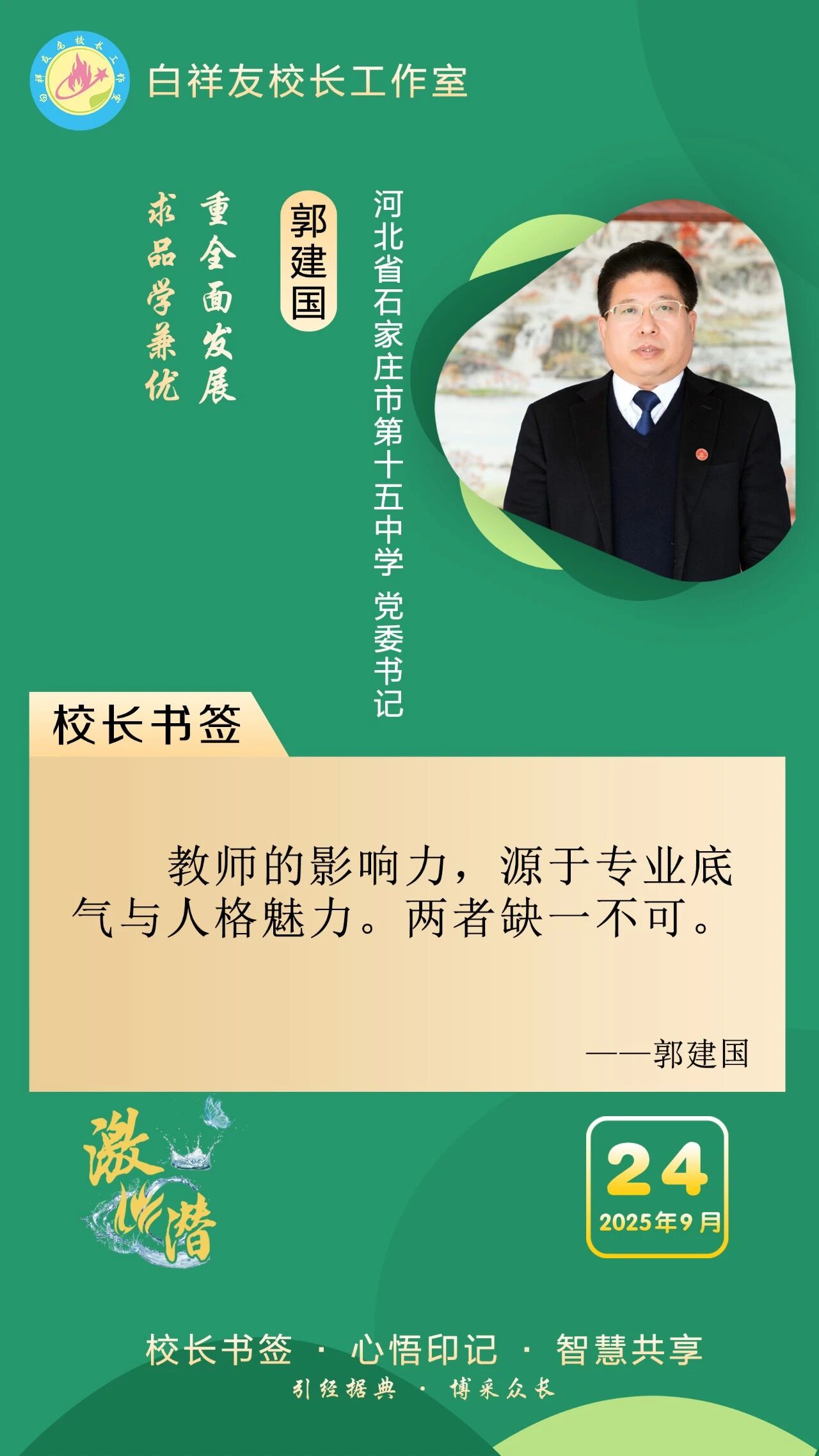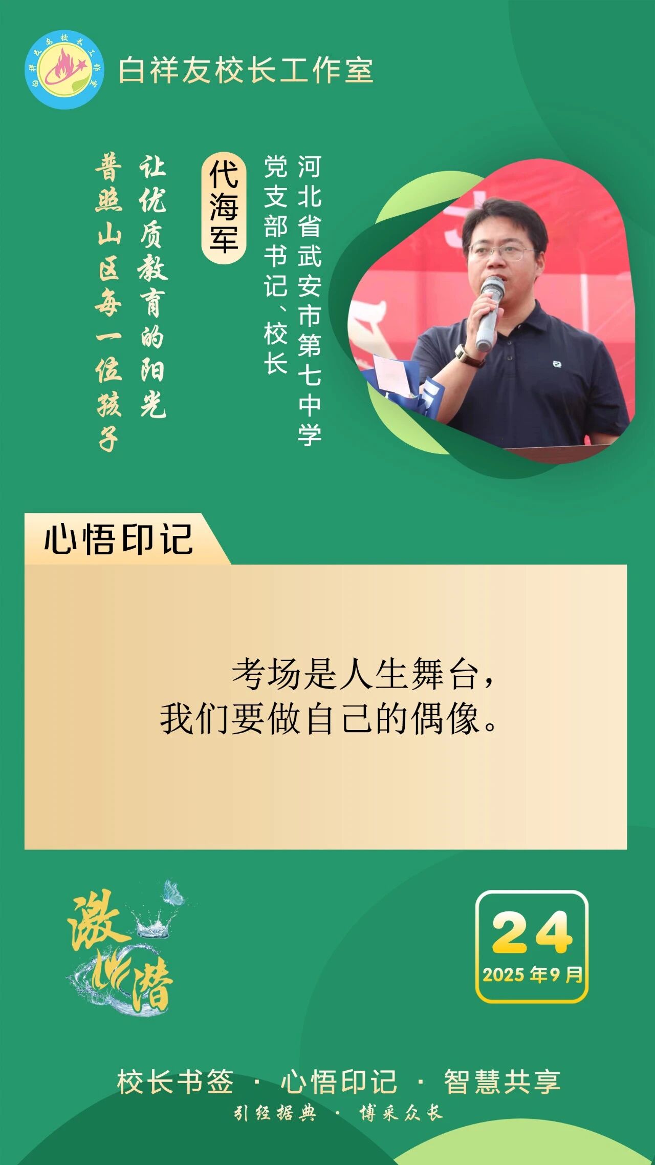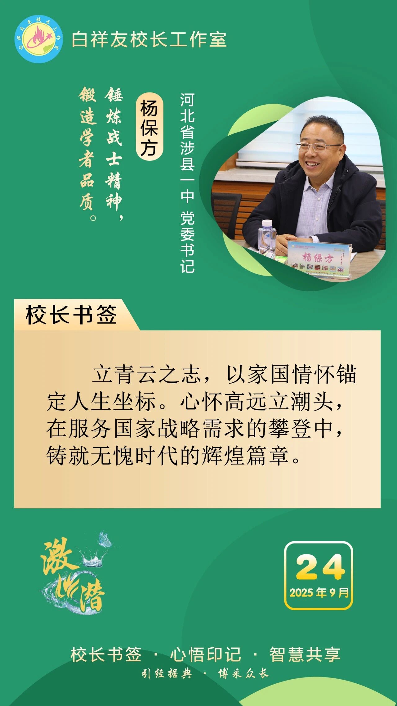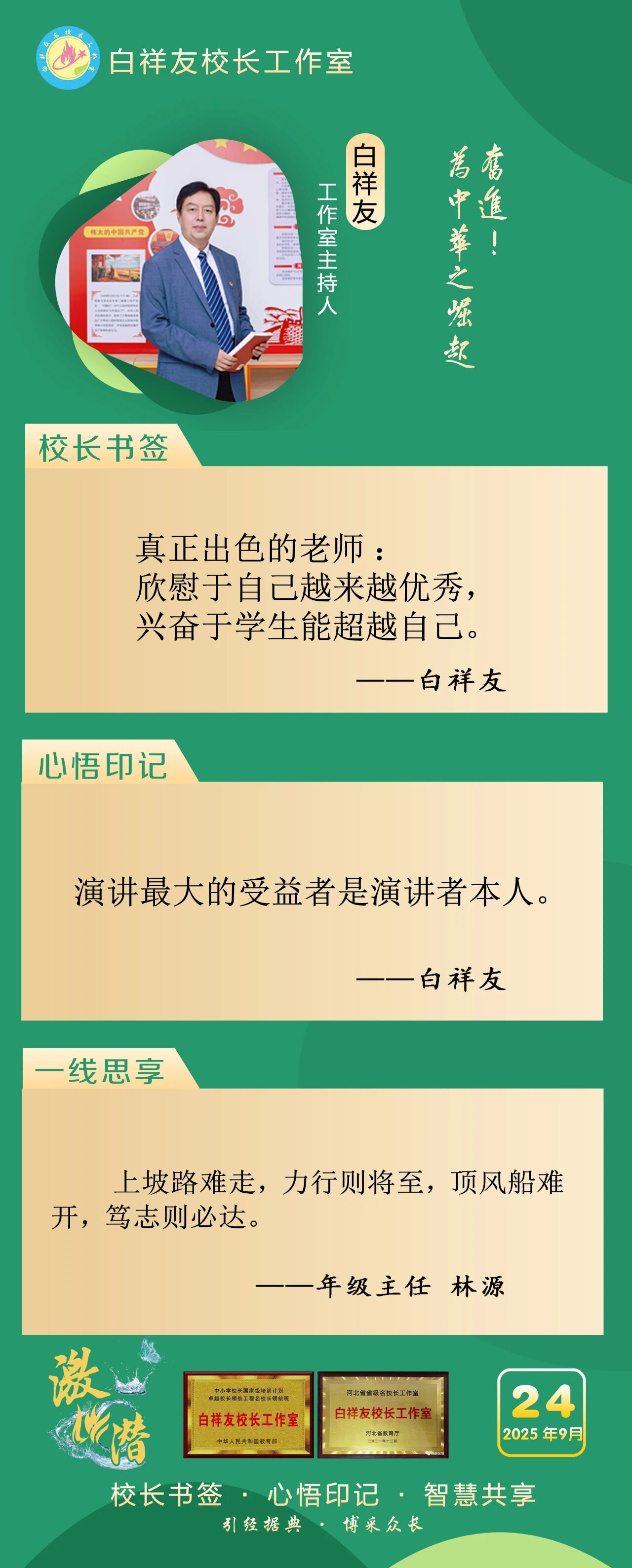 “白祥友校长工作室”成立于2019年4月,是教育部“国培计划”中小学名校长领航工程、河北省首批名校长工作室,目前省内外成员校59所。工作室坚持“资源共享、智慧共融、互助共赢”理念,已成为思想碰撞的交流场,资源共享的品牌站,成果展示的辐射源。 点赞 +1 微博 微信 我要评论 发布 相关推荐 巾帼筑梦绽芳华 向光而行建新功 河北衡水中学举办第十八届“杰出女教师”表彰大会 资讯速递 4天前 衡水十三中学子这样追“锋”! 教育大观 03-06 马力加载,衡水十三中学子元气回归! 教育大观 03-05 青春不 “宅” 家!跟着衡水十三中学子“趣”过寒假 教育大观 03-02 看衡水十三中学习的新年全家福 教育大观 02-27 “新春氛围组”就位,看衡水十三中学子解锁红火中国年! 教育大观 02-24 激潜铸魂践初心 奋进逐梦启新程————衡水市第十三中学2025年办学成果回眸 教育大观 02-11 热门 一天 三天 一周 1 衡水气象科普走进政务大厅 为世界气象日预热 2 衡水市区宝云公园:修剪养护已完工 静待花开映日红 3 为思想“充电” 为幸福“加油” 武邑县总工会举办女职工主题讲座 4 把“最活跃地带”打造成“最坚强阵地” 衡水以三大抓手破题新就业群体党建 5 衡水市环卫中心开展便道冲洗专项行动 为城市环境“洗颜换妆” 6 衡水市故城县抢抓农时全力保障春灌用水 7 今年衡水将完成200户特殊困难老年人家庭适老化改造 8 衡水发布2月份食品安全“红黑榜” 194家生产经营主体上榜 9 枣强:植绿护绿正当时 多彩活动共筑生态家园 10 衡水阜城:春回大地农事忙 1 守护安全 畅通消费 衡水市2026年“3·15国际消费者权益日”系列活动启动 2 人勤春来早 春管正当时——衡水市扎实推进春季农业生产纪实 3 【新闻发布】衡水发布2025年消费维权“成绩单”——12315热线受理投诉按时办结率100% 4 衡水全力加强麦田春管夯实夏粮丰收基础 5 衡水市工商业联合会(总商会)第七次代表大会召开 6 【新闻发布】每人每月最高800元 衡水向中度以上失能老年人发放养老服务消费补贴 7 【乡村行 看振兴】棚室轮作种植 果蔬四季“生金” ——看董师傅如何算好“增收账” 8 武强县开展“3・15”金融消费者权益保护宣传活动 9 气温回暖年货干果易霉变 衡水市人民医院消化内科医生提醒:出现这三种情况切勿食用 10 河北衡水:湖城春景入画来 1 《中华人民共和国献血法》首次修订——这些变化和每位献血者有关 2 春回大地寻野趣!衡水市民踏青挖野菜 安全尝鲜需谨记 3 衡水籍运动员刘晓彬米兰冬残奥会上夺银 4 景县举办庆“三八”国际妇女节文艺汇演 5 “巾帼芳华 为爱赴约” 衡水市总工会举办青年职工相亲交友活动 6 首金诞生!衡水健儿省运会冰雪赛场勇创佳绩 7 一场制造业的“数字春雨”——衡水市景县优化营商环境一线探访 8 书香润初心 玫瑰绽芳华 市总工会举办主题读书分享会 9 国防教育进校园 点燃青春报国志 我市军事机关送课下基层活动在衡水二中启动 10 春风送岗暖民心 衡水故城县举办残疾人专场招聘会 广告 广告 广告 24小时 1 提升消费品质|衡水移动多维度开展“3·15”主题系列活动 2 海报系列||早安衡水 3 社区“摆摊”讲防骗 武邑居民家门口学到“3·15”维权硬知识 4 燃气有管家 安全进万家 5 学习笔记丨两会三到团组,习近平强调了这些事 6 金色相框|习近平2026年两会时间 7 感恩奋进 双争有我丨河北雄安保障房安居工程有限公司:贴心服务,守护疏解人员安居梦 8 雄安新区“雄才卡”发卡量超1.7万张 9 全国两会·代表委员说丨全国政协委员齐向东:雄安新区正成为新时代的创新高地和创业热土 10 央视《焦点访谈》·跟着总书记上两会丨河北代表裴红霞:让学生全面了解和认识中国式现代化建设