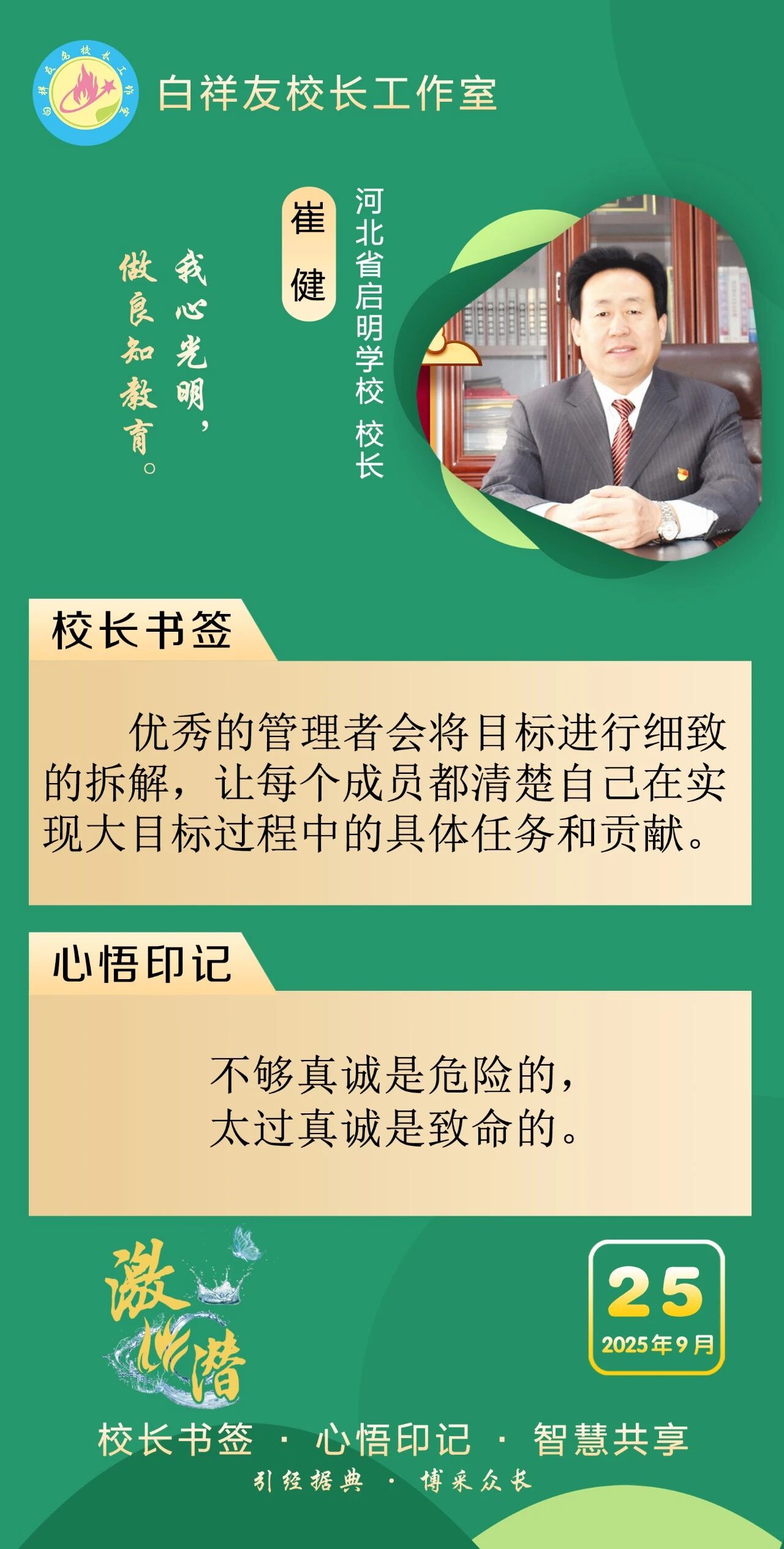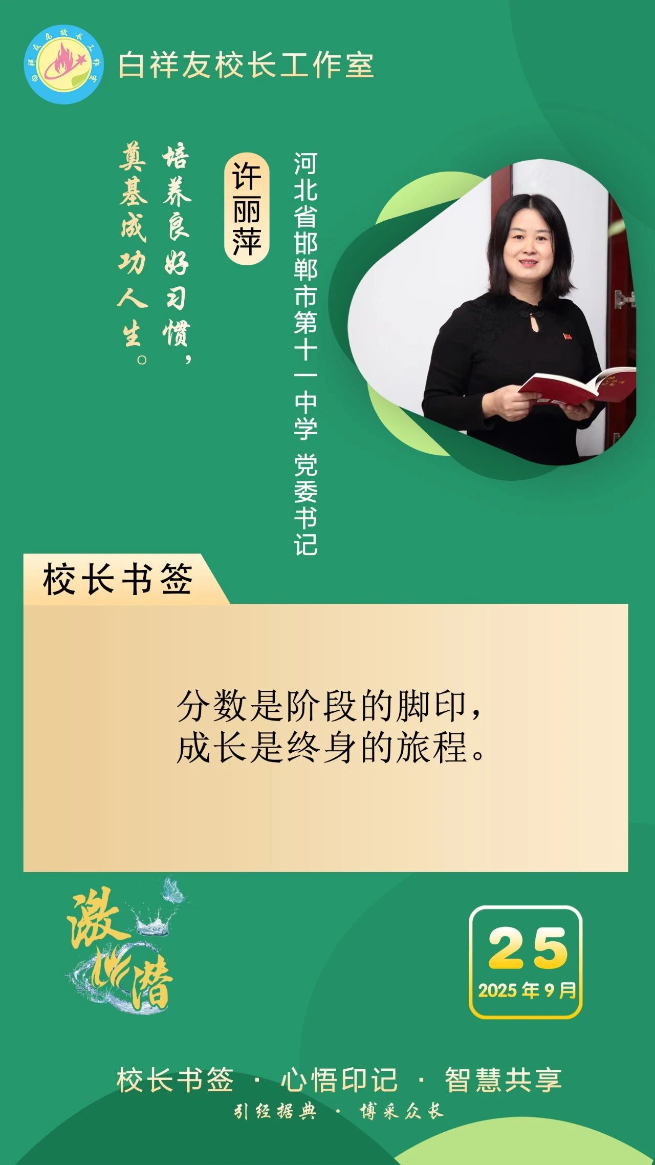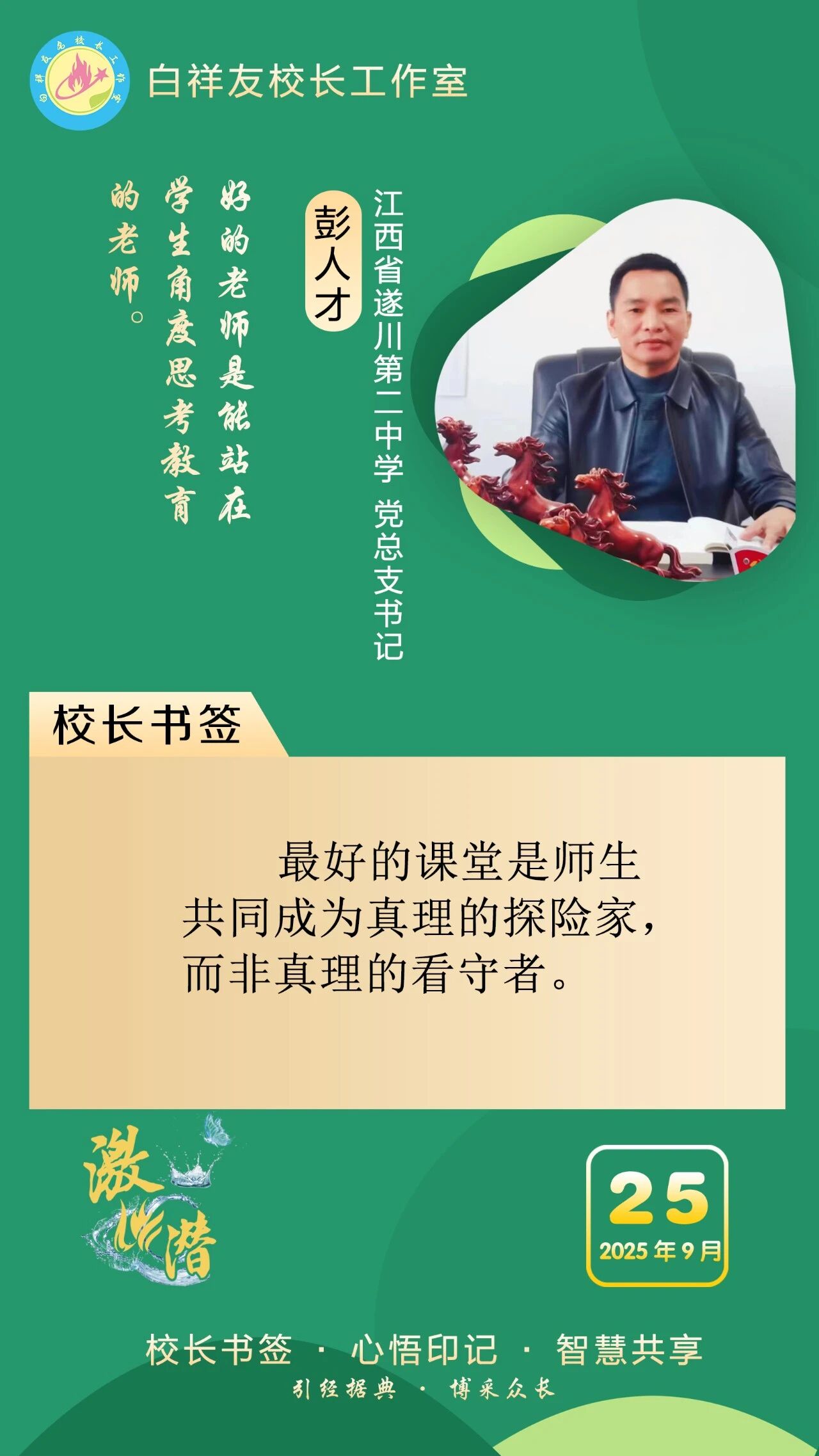 “白祥友校长工作室”成立于2019年4月,是教育部“国培计划”中小学名校长领航工程、河北省首批名校长工作室,目前省内外成员校59所。工作室坚持“资源共享、智慧共融、互助共赢”理念,已成为思想碰撞的交流场,资源共享的品牌站,成果展示的辐射源。 点赞 +1 微博 微信 我要评论 发布 相关推荐 祝贺!衡水十三中学子省赛获奖 教育大观 1天前 白祥友校长工作室成员新疆实验中学冯永庄校长一行来衡水十三中参观交流 教育大观 3天前 春日里,衡水十三中学子“抢”个痛快,“拼”出花样! 教育大观 6天前 衡水市委管理干部学习贯彻党的二十届四中全会精神研讨班开班 政情 03-19 全市一等奖!衡水十三中激潜教育再结硕果 教育大观 03-17 巾帼筑梦绽芳华 向光而行建新功 河北衡水中学举办第十八届“杰出女教师”表彰大会 资讯速递 03-09 衡水十三中学子这样追“锋”! 教育大观 03-06 马力加载,衡水十三中学子元气回归! 教育大观 03-05 热门 一天 三天 一周 1 微改革激发新活力 微创新助力大发展——衡水市扎实推进改革创新工作走深走实 2 【新闻发布】 创新招商促落地 深化服务提质效 衡水市持续打造投资兴业热土 3 春菜上新 衡水市区超市“鲜”意十足 4 衡水发布27个重点招商产业 聚焦县域特色精准发力 5 我市全方位营造安心舒心消费环境 全年累计使用补贴资金8.3亿元 带动消费61.3亿元 6 衡水滏阳路:美人梅盛开 繁花似锦 7 衡水市举办主城区网络餐饮食品安全培训会 8 故城:百人太极展风采 全民健身焕新颜 9 阜城码头镇:运河岸边焕新颜 乡村颜值气质双提升 10 全国学雷锋活动示范点衡水公交18路队:服务不是喊口号,是把乘客没想到的提前想到 1 一碗免费热食 暖了衡水的烟火人间 2 衡水市各部门各单位有力有序开展树立和践行正确政绩观学习教育 3 衡水桃城区城东社区开展“世界水日”主题宣传活动 4 “入企探岗”+“直播带岗” 衡水市“春风行动”线上直播招聘活动创新出彩 5 河北各地各部门各单位扎实开展树立和践行正确政绩观学习教育 6 【乡村行 看振兴】“老咸菜”里的乡愁——走进武邑县冀京农粮食种植专业合作社 7 衡水市2026年上半年全国计算机等级考试本周末开考,市教育考试院发布考前温馨提示 8 深州市庄火头村:人勤春早管桃树 精耕细作盼丰收 9 故城董学村:赓续千年文脉 绘就振兴新景 ——我市文化建设走笔之二 10 让百姓在家门口看好病 ——河北省聚力建设紧密型县域医共体 1 “白牌”电动自行车还能骑吗? 衡水晚报“帮办”核实:已全面禁行,违规上路会受罚 2 高职单招考试3月21日开考 衡水9300余名考生将参加考试 3 探秘气象“大本营” 解锁防灾新密码 饶阳县气象局举办世界气象日科普开放活动 4 【新闻发布】锚定便民利企目标 衡水发布2026年自然资源营商环境新蓝图 5 【新闻发布】聚焦科技赋能 衡水绘就营商环境新图景 6 315金融观察|大地财险罚单密集落地,暴露合规短板 7 以鱼养水净河道 2万余尾草鱼苗放流滏阳河衡水市区段 8 枣强县第四届杏花文化宣传推介会邀您共赴春日之约 9 2026年1-2月份主要经济数据公布 全省经济起步有力 10 沃土育新苗 科创结硕果——探访河北威昌佳泰实业有限公司 广告 广告 广告 24小时 1 白祥友名校长工作室 | 激潜教育探索随笔(第787期) 2 “创赢未来”2026创业大赛衡水选拔赛开始报名了 3 泰州科举院试文化文物展走进衡博 4 衡水市完成全省首个公共数据产品交易 公共数据收益缴入国库 5 孙敬学堂:深耕礼孝传承 筑强研学高地——我市文化建设走笔之三 6 仅用两分钟 衡水交警紧急开道护送断指伤者就医 7 【乡村行 看振兴】科技种出“新花样”——探访桃城区衡水国际设施园艺产业园 8 河北衡水:全民健身 燃动湖城 系列④ —— 乒动湖城 国球飞扬 9 再攀高峰!中国人寿2025年总保费首破7000亿,同比增长8.7% 10 【凝心聚力 真抓实干 奋力实现“十五五”良好开局】锚定建设农业强国目标 提升农业综合生产能力