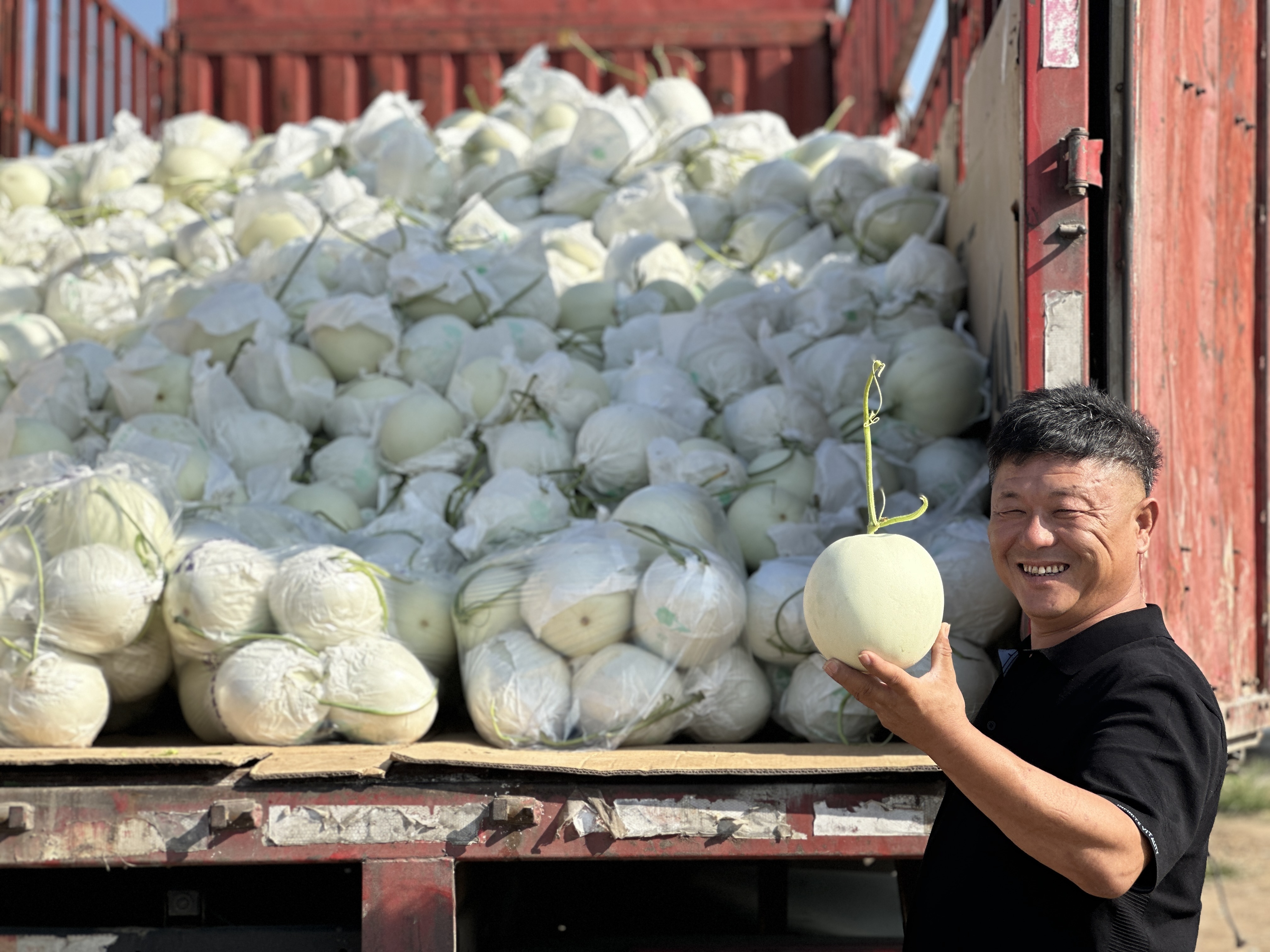 “我一共承包了14个大棚,主要种玉菇瓜还有网纹瓜。”承包户王利刚一边忙着指挥装车,一边笑着介绍,“这瓜口感软糯,甜度又高,在市场上很受欢迎,好多老客户提前就下了订单。这一批瓜刚丰收,算下来效益比去年好了不少。”
