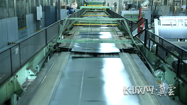 走进首钢京唐公司镀锡板生产车间,产线轰鸣运转,一张张光泽如镜的镀锡板陆续下线。