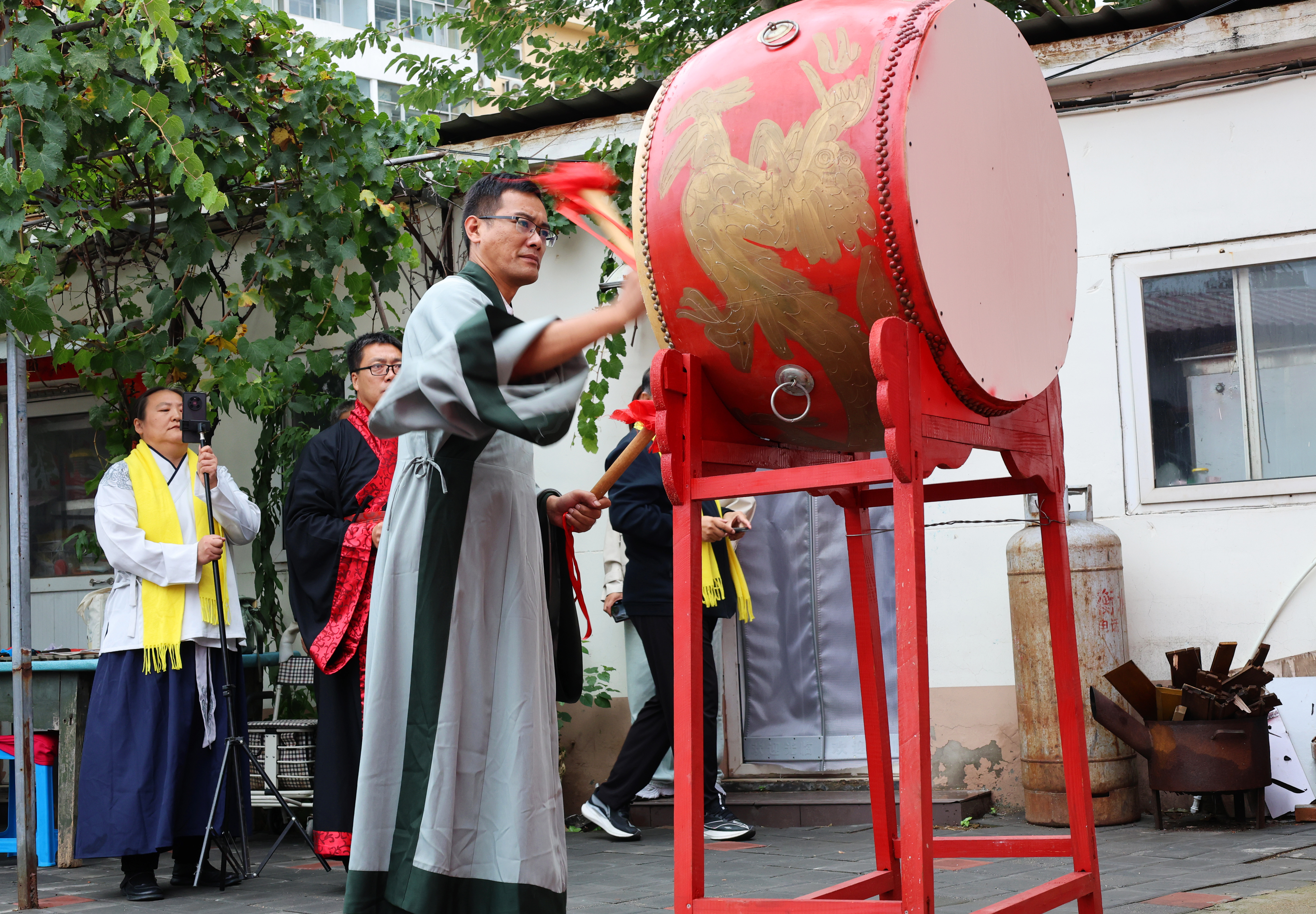 活动现场,来自衡水市各社会团体、国学学堂、文化机构的百余名国学爱好者齐聚一堂。大家统一佩戴黄色绶带,部分参与者身着汉服,整齐站立于院内,以升国旗、读祭文、行拜礼、诵经典等传统仪式,缅怀至圣先师孔子,传承中华优秀传统文化。