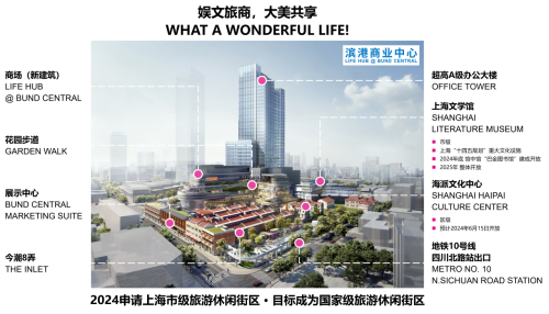晓喻上海的“海派潮流新地标”。滨港商业中心尽享上海中心城区360°景观,以城市更新、历史保护、商业复兴作为开发使命,以“娱文旅商 大美共享”为理念核心,致力于构建新商业与城市历史街区交叠、上海文学馆与海派文化中心共生、超高办公楼与户外绿地广场互通的多样功能复合业态的城市生活中心,以“沉浸式泛娱乐”为方向,将成为上海下一个标杆性城市娱文旅商综合体。