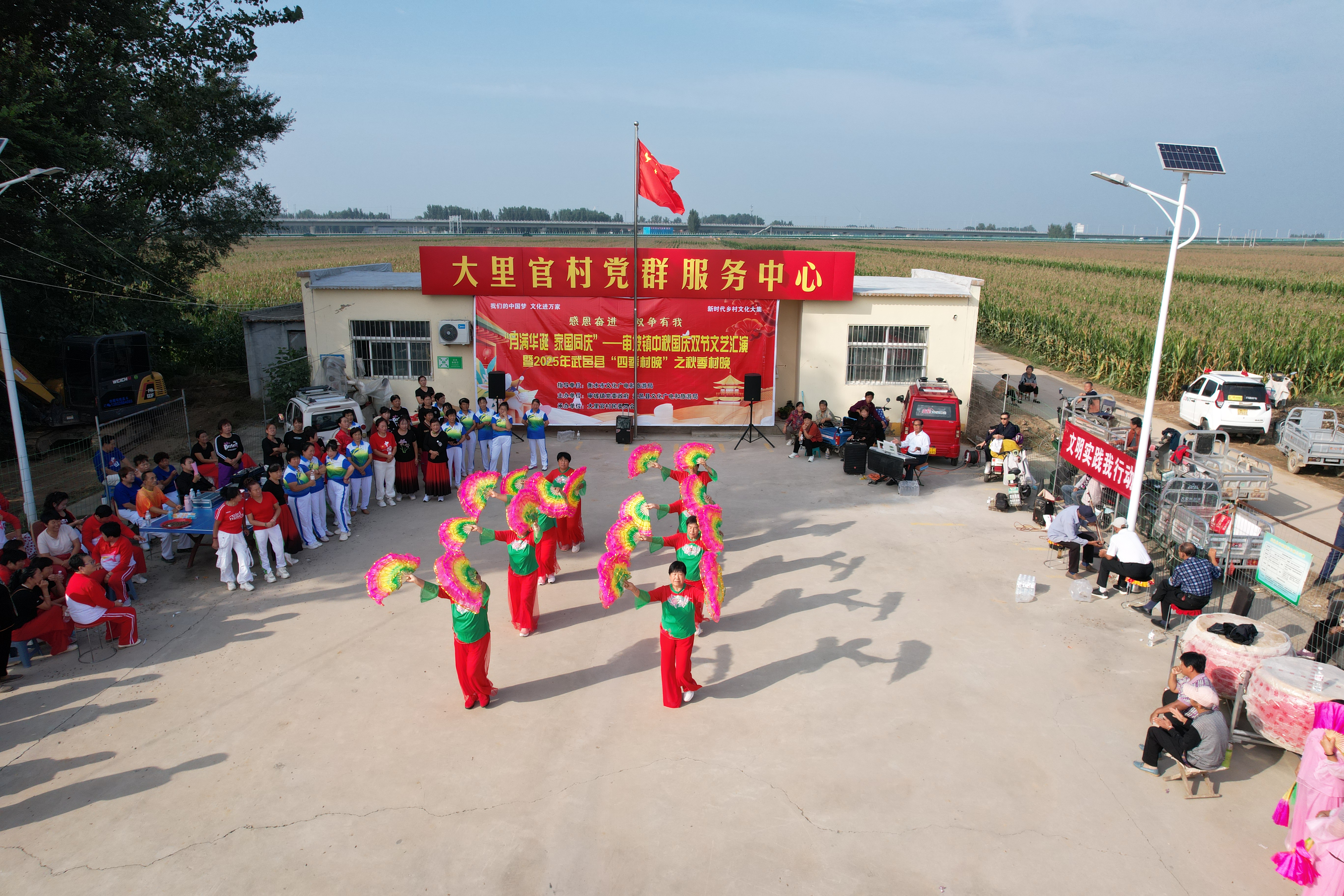 本次活动由衡水市文化广电和旅游局指导,审坡镇政府、武邑县文化广电和旅游局主办,大里官村村委会承办。来自周边村镇的10余支舞蹈队和当地文艺爱好者带来的舞蹈、歌曲、戏曲、乐器演奏等精彩的30多个节目轮番登场。