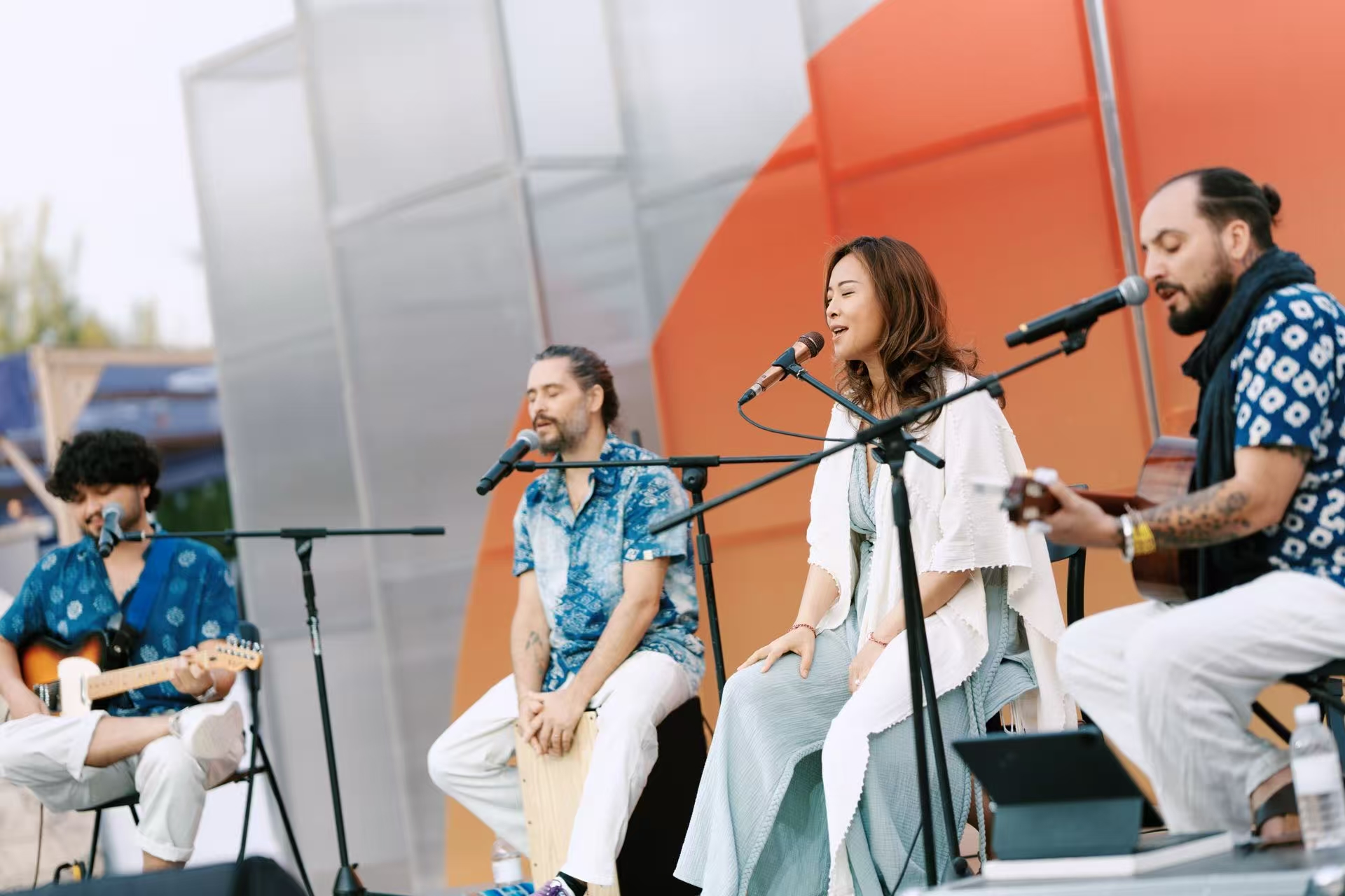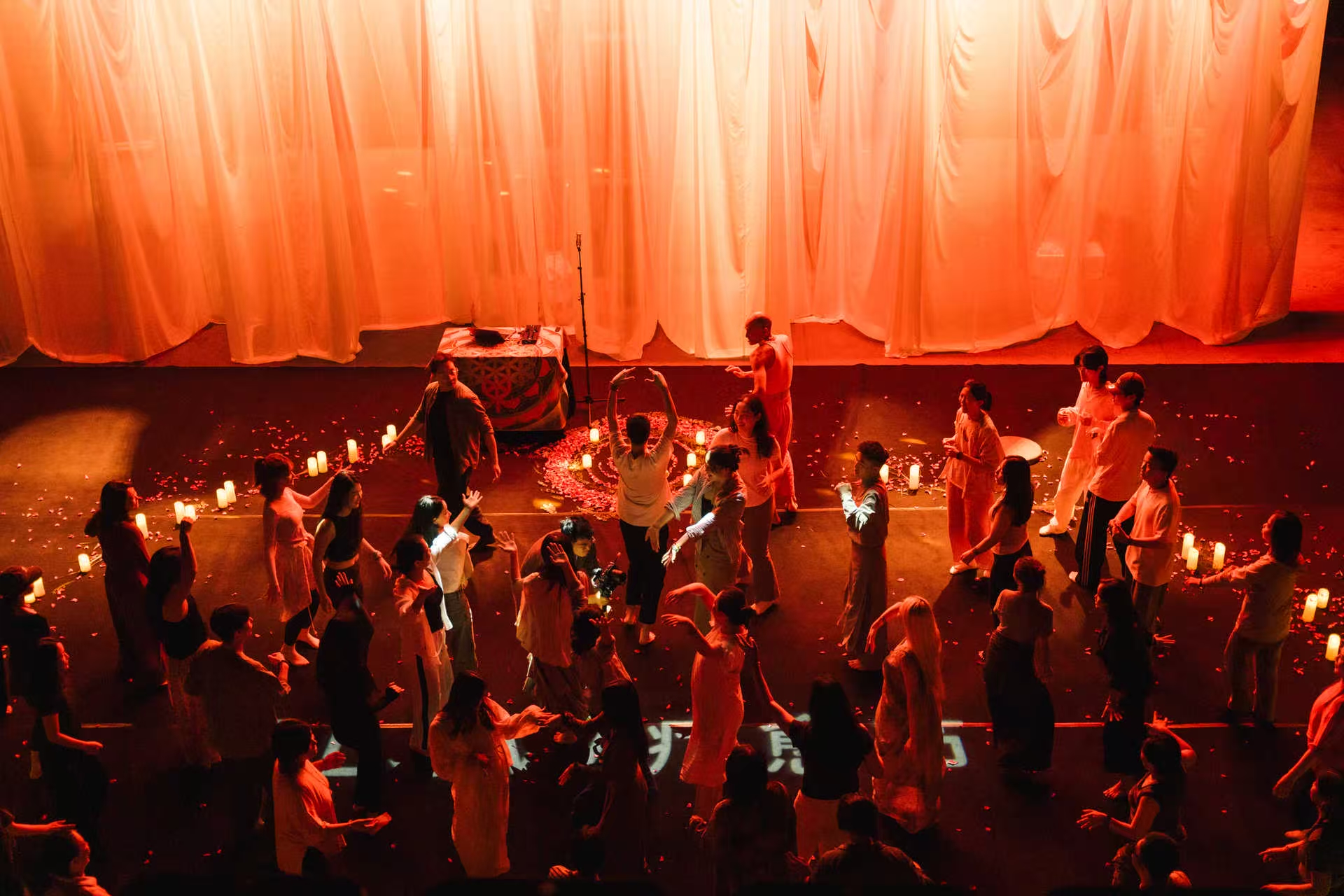 "身体觉醒"系列中,百余人在面海草坪上同步呼吸伸展,颂钵声波与海浪声共鸣,创造出深度的沉浸体验。"多维声疗"系列则利用酒神剧场的独特声学环境,打造了全场爆满的"日落剧场LIVE"活动。