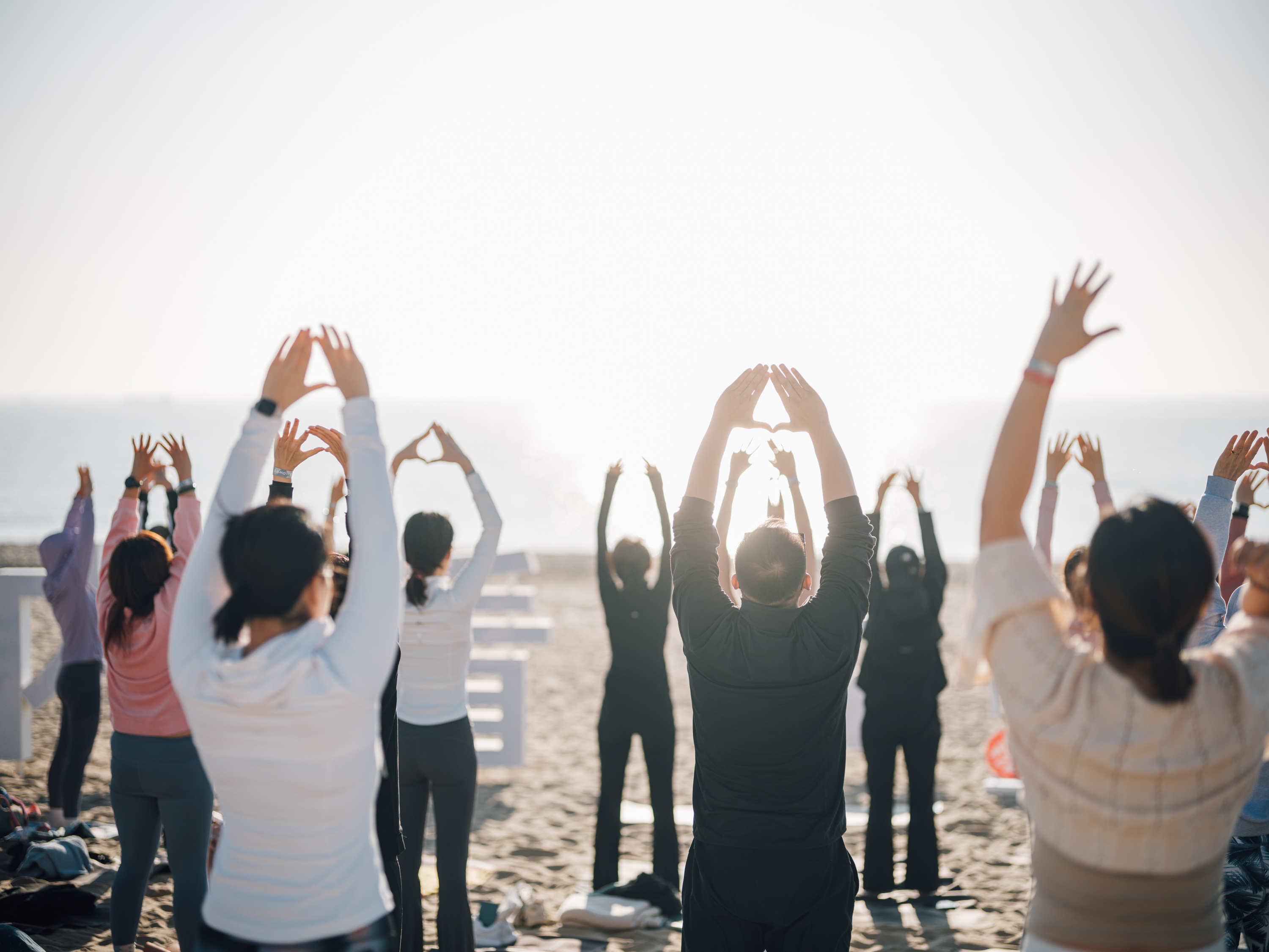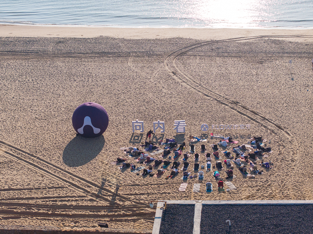 活动首日清晨,阿那亚的沙滩上便已聚集了数百名参与者,在导师的带领下进行晨光冥想与瑜伽练习。海天相接处朝阳初升,与人们的呼吸节奏同步,构成一幅动人的画面。