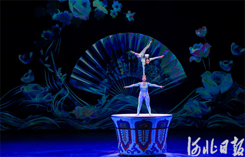 9月28日 ,“为人民绽放——国家艺术基金优秀杂技节目展演”在吴桥江湖大剧院举办,山东省杂技团演员正在表演《弈》。河北日报记者 李东宇摄