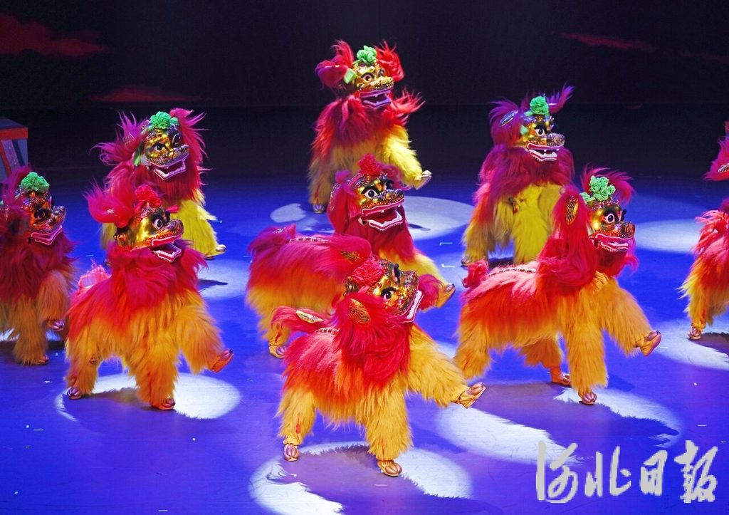 9月28日晚,第二十届中国吴桥国际杂技艺术节《梦·吴桥》演出在吴桥东方杂技城精彩上演。图为《祥狮跃九州》节目。河北日报记者 张昊摄