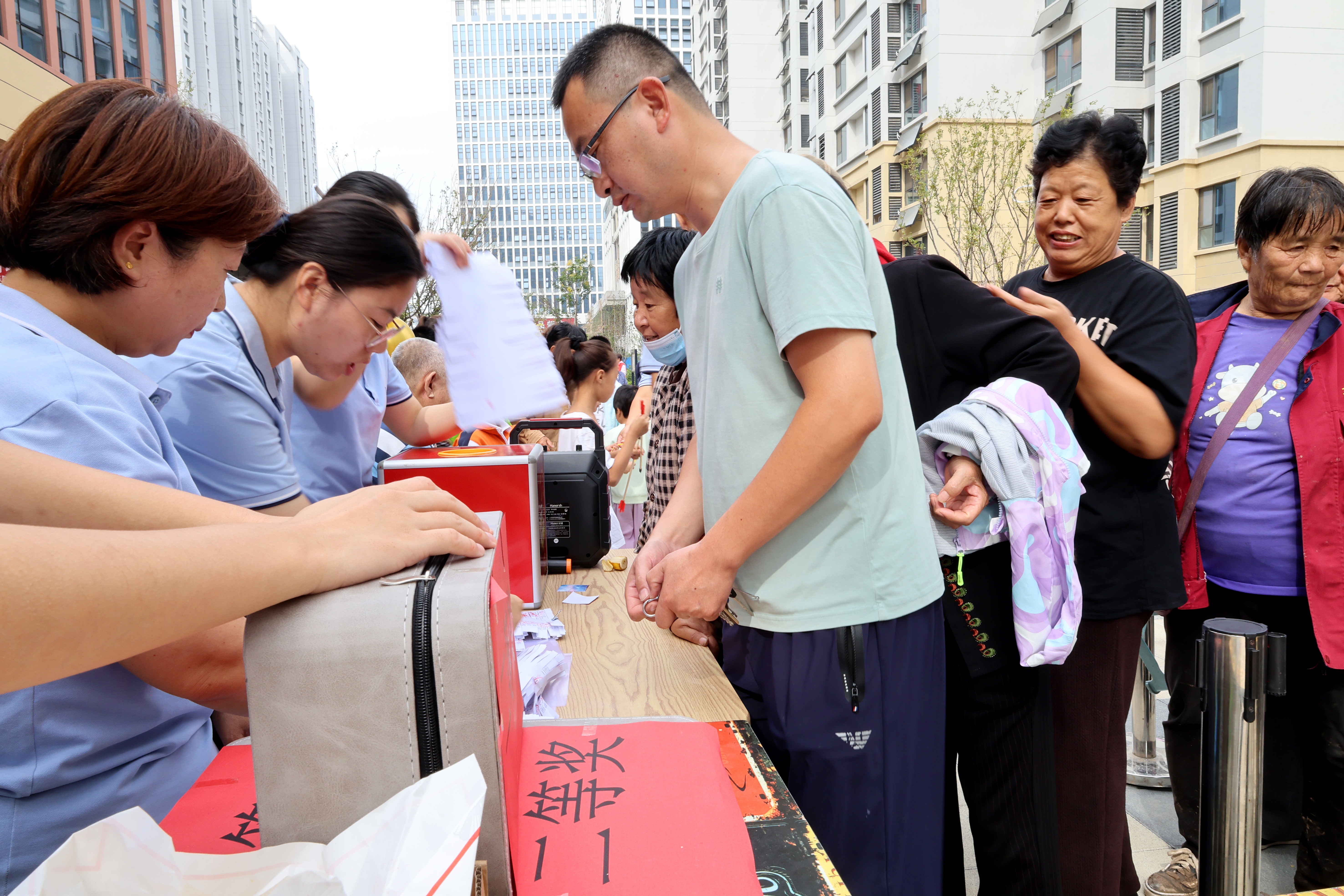活动现场集互动体验、便民服务与福利派送于一体,处处洋溢着热闹氛围。投壶、套圈等经典趣味游戏区域,大人与孩子围聚嬉戏,欢声笑语此起彼伏;小区附近超市为活动提供支持,现场设置的新品免费试吃点位,让业主们在热闹中品味新鲜滋味。便民服务同步暖心落地,免费理发点位前业主有序排队,义诊区内不仅提供免费量血压服务,更特邀牙科医生坐诊,为成人、儿童群体针对性提供口腔健康咨询服务。此外,小区物业工作人员提前备好含五仁、蛋黄、山楂玫瑰、板栗4种口味的月饼盘,逐一向业主发放品尝,将双节的暖意精准传递至每一户居民。