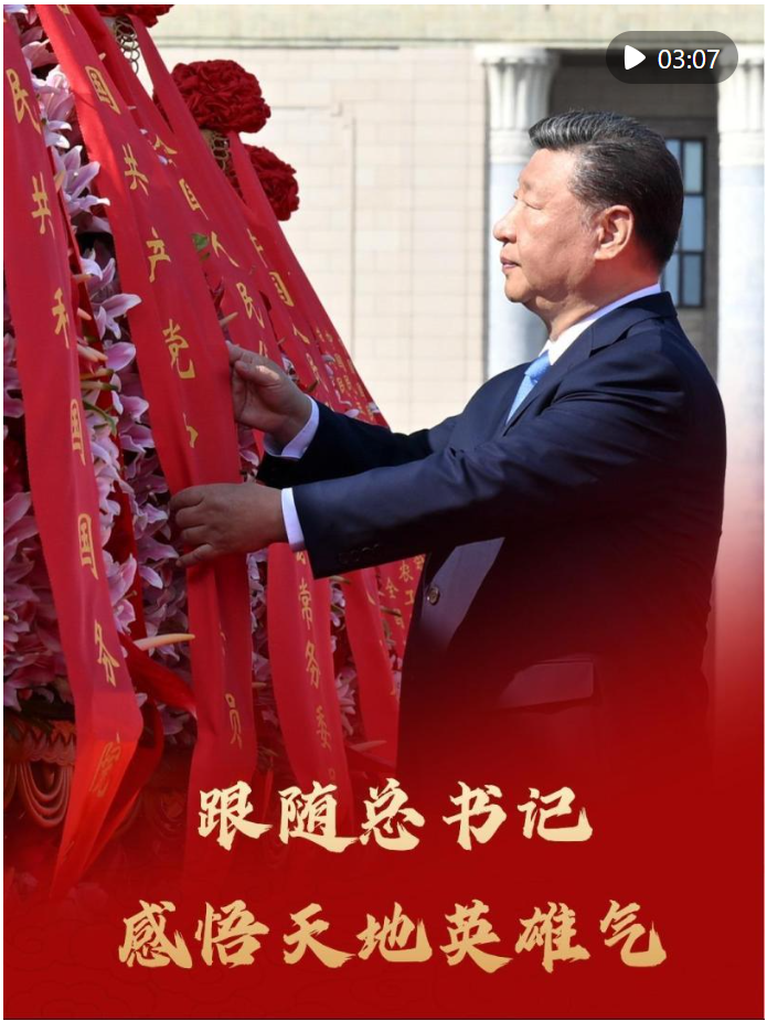 这些年来,总书记多次看望慰问抗战老战士、革命烈士家属,考察参观革命纪念馆、抗战纪念地。敬献花篮、倾心交谈、庄严授勋……每一个动作,每一项安排,都是将历史铭记于心的躬身践行,都是对英雄前辈的崇高敬意。