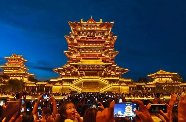 “双节”假期,大名聚焦“运河文化”+“水浒IP”的在地化融合,以“一城一府一运河”的历史底蕴,通过“行进式演艺+片区联动”设计,将群星演唱会、特技表演、光影秀、宋风雅集、非遗体验、美食市集等多片区百余场丰富多彩的活动串联起来,打造“天天有戏、处处有景”的沉浸体验。