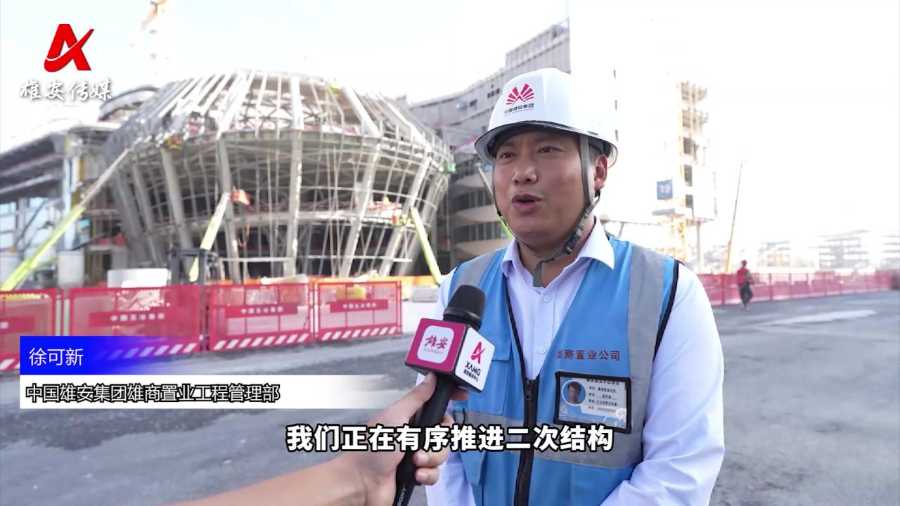 雄商置业公司工程管理部干部 徐可新:“我们正有序推进二次砌筑、机电施工、外立面、精装、景观小市政施工等多项工序同步穿插作业,全力推进项目建设进度。