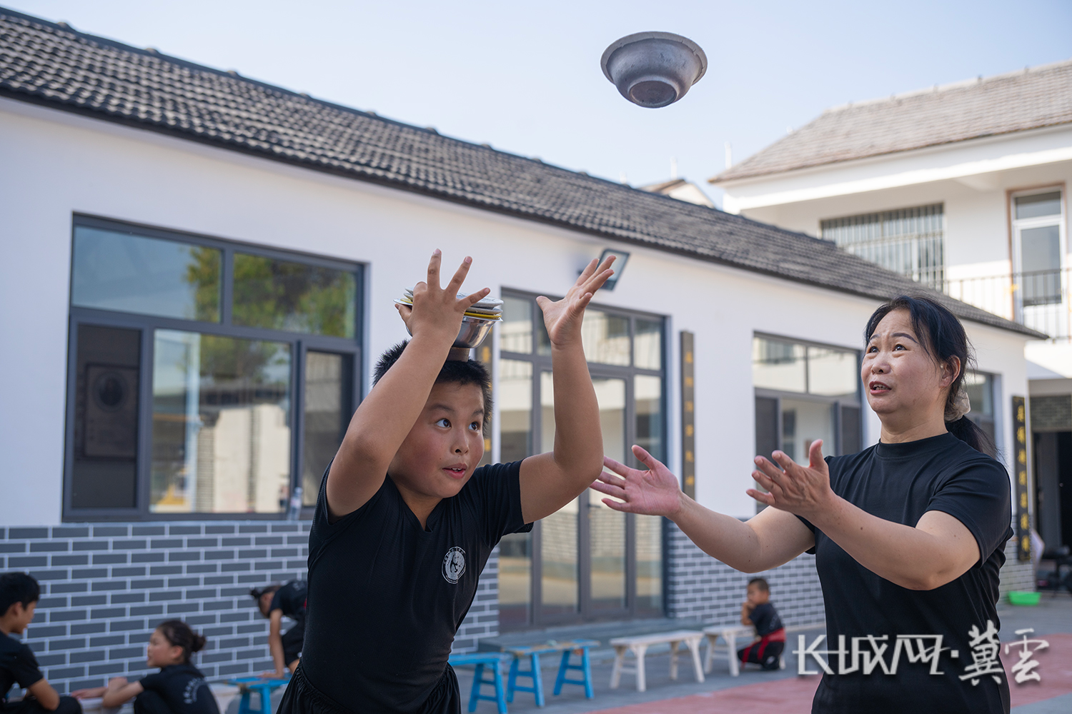 1987年参演《晃板》时,夏章辉(右)只有9岁,如今他是河北省杂技团的教练。今年,他带着徒弟王皓、李孜轩再战吴桥杂技节金狮奖。长城网·冀云客户端记者 许付磊 摄