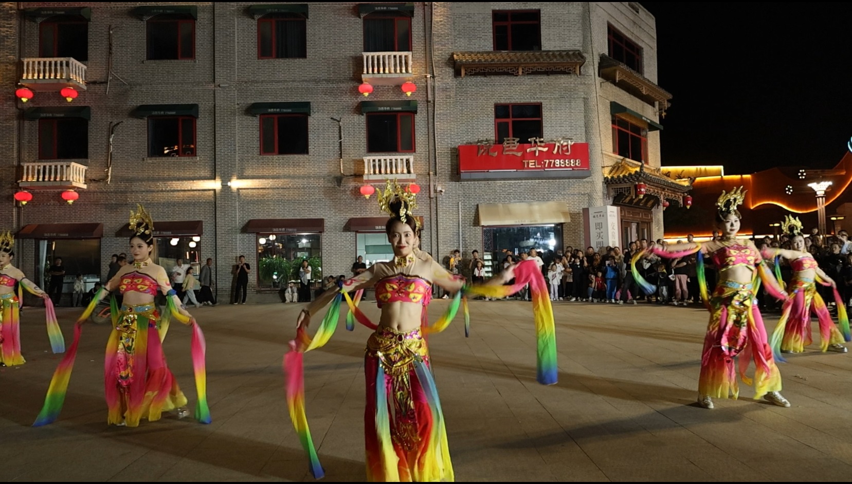走进饶邑古城,仿佛踏入一个欢乐与文化交织的世界。在节目演绎方面,此次活动亮点纷呈。创新升级的打铁花表演区,五台炉子同步运作,艺人挥臂猛击滚烫铁水,金色火花瞬间腾空,如烟花般在夜空绽放,引得游客们连声惊叹:“之前看过打铁花,但这么大规模、高水准的还是头一回,太震撼了!”“嫦娥奔月”高空舞蹈秀同样让人眼前一亮,只见演员们身着飘逸的嫦娥服饰,与高空巨型“月亮”轻盈互动,鲜活再现古老神话场景。古风汉服表演也分外吸睛,一众舞者伴着悠扬古乐翩然起舞,水袖轻扬间,带领观众沉浸式感受传统文化的独特魅力。