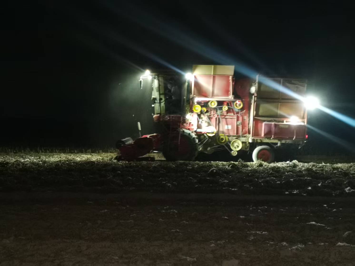 手电光束来回扫射,脚步声、装袋声、车辆轰鸣声交织在一起,田埂上人影奔忙,谁也不敢停下。