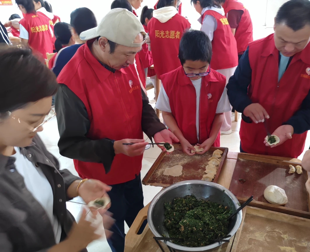 中秋,是中华民族象征团圆与和睦的传统佳节。上午9点,阳光志愿者们准时到达敬老院,刚放下物资就立刻忙碌起来。在食堂里,志愿者们分工合作,揉面、分馅、擀皮、包饺子……一个个饱满的饺子,不仅包裹着新鲜的馅料,更凝聚着志愿者们浓浓的爱心。还有一部分志愿者分成多个小组,提着月饼和香蕉走进老人的房间,与老人们唠家常。志愿者们耐心倾听老人们讲述过去的故事,时而点头回应,时而轻声安慰,用真诚的陪伴驱散老人们的寂寞。