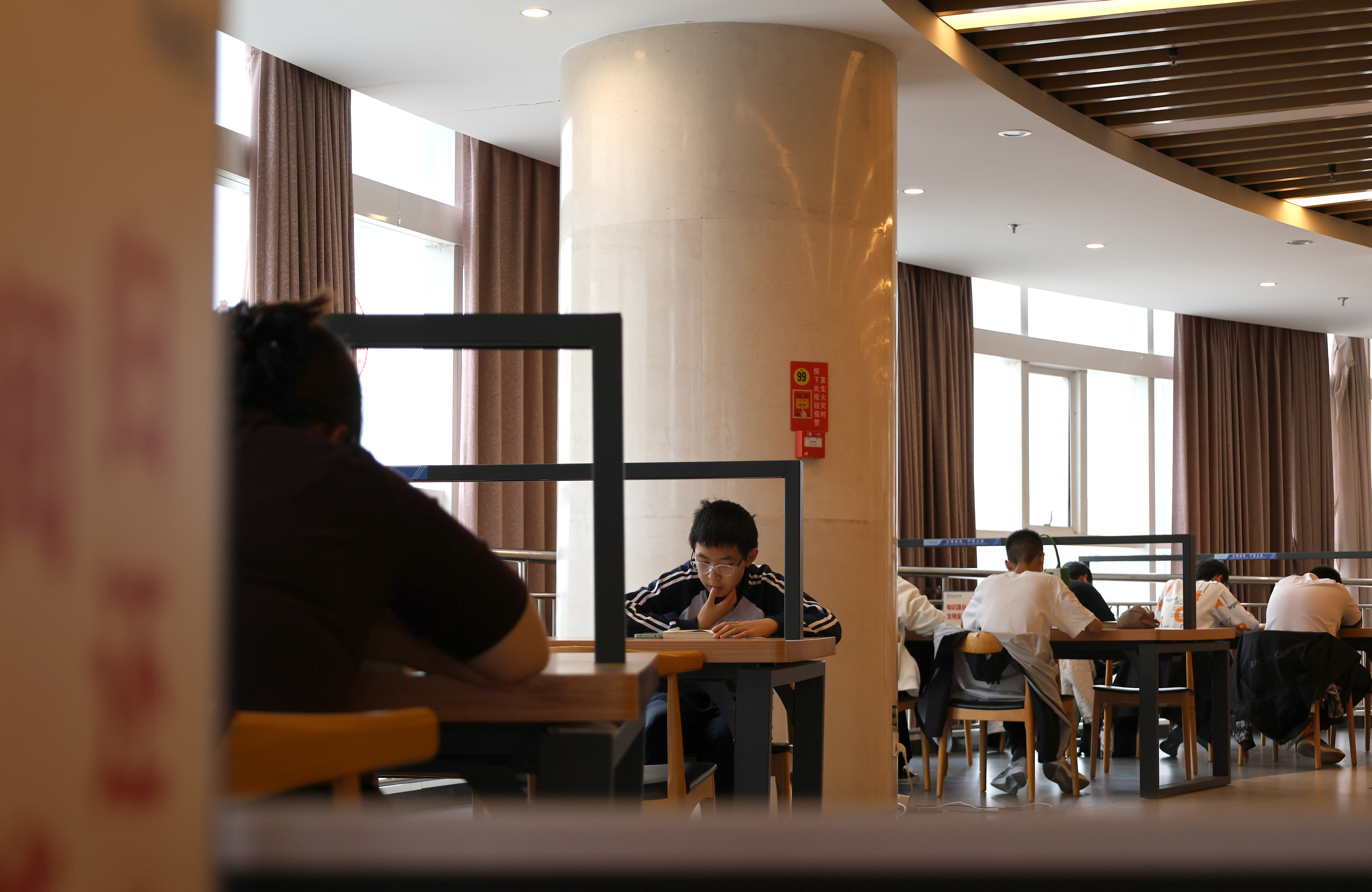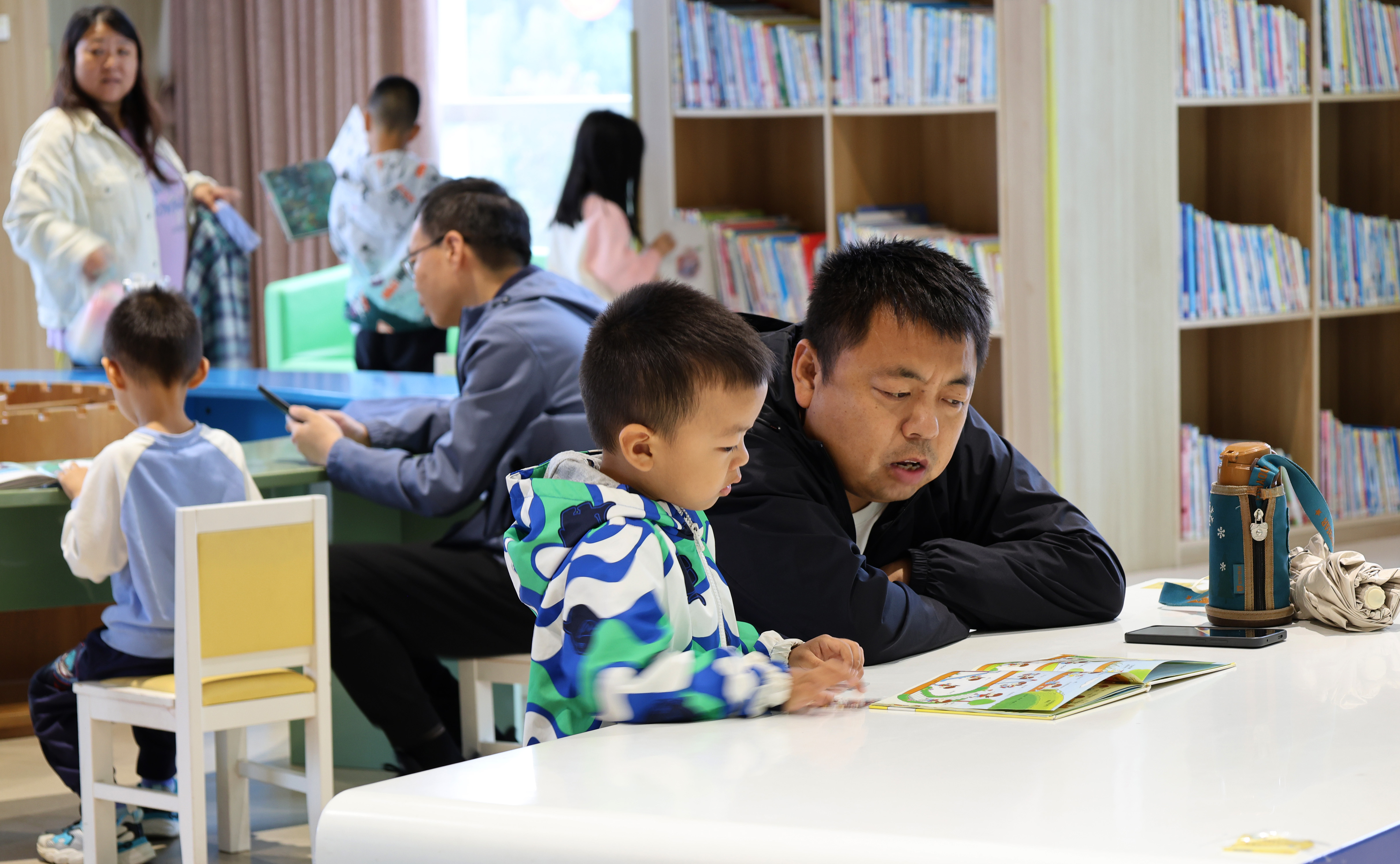 10月6日,国庆长假第六天恰逢中秋节,市图书馆内读者数量较假期前两天略有减少。“假期头两天人气很旺,近两天受天气影响,到馆人数有所下降。”图书馆工作人员介绍,10月1日至3日,图书馆日均接待读者近3000人次,近两日因天气原因,日均进馆人数1500人次。即便如此,馆内各阅览区仍不乏专注的身影。