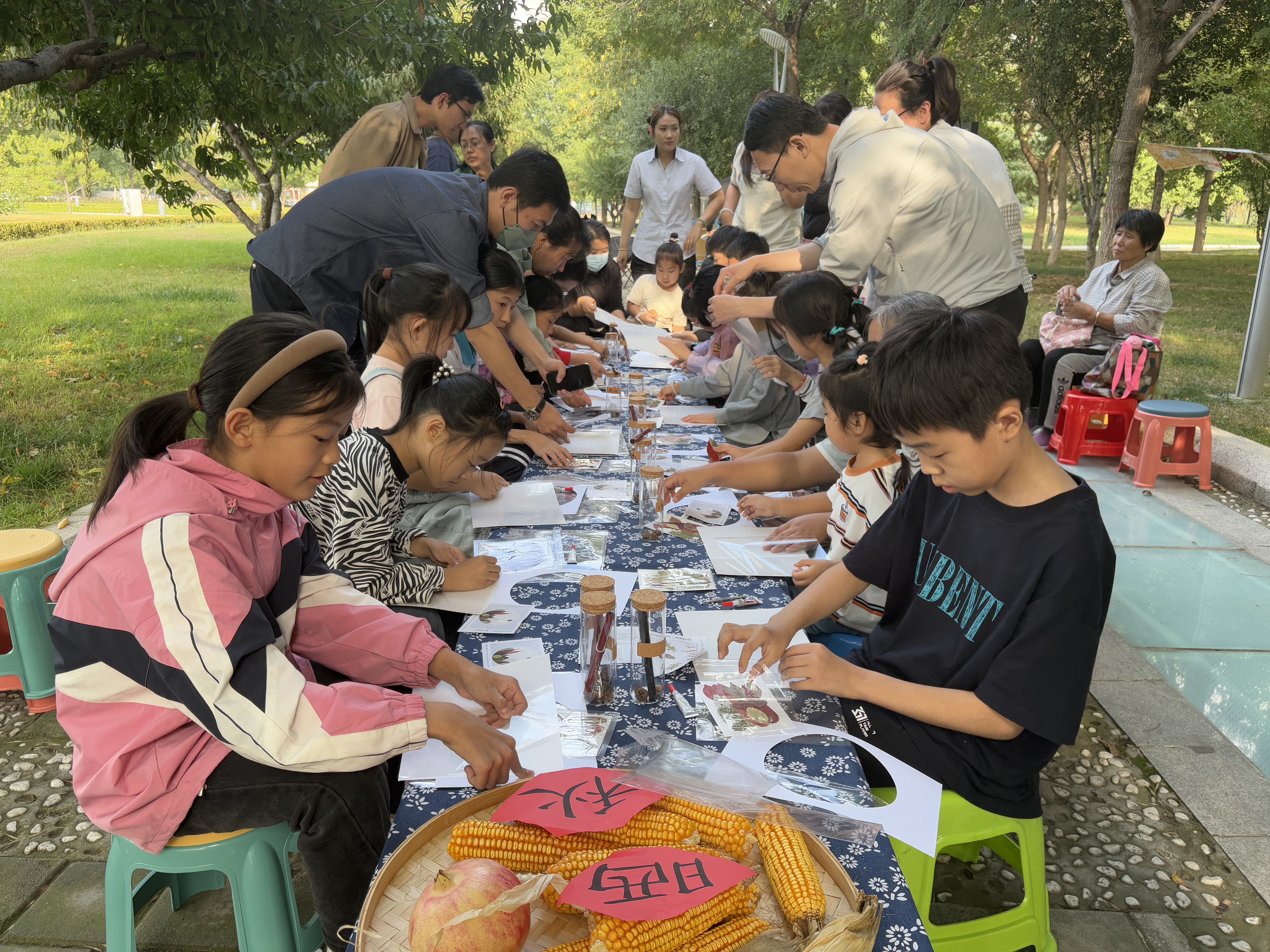 “到公园读本书”公园阅读生活节——中秋节特别活动在滏阳文化公园举行。本次活动旨在将阅读融入自然,为家庭创造一段高质量的共处时光。活动现场气氛热烈,活动设置了丰富的互动环节,包括绘本讲读、传统晒秋体验、落叶画创作以及中秋诗词书写。这不仅让读者在诗词书写中感受传统文化魅力,更以趣味互动形式为中秋节增添了书香雅趣。参与者还通过参与活动收集特色植物种子,留存一份秋日纪念。