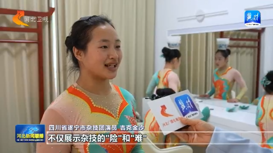 这次我们盛典演出最大特点是把我们在吴桥回家过后的20届艺术节的辉煌成果展示。这边我们也做了一个开场秀,200多演员跳同样一个舞蹈,那种国际范儿,大团结、大派对。结束时候,我们突然像变魔术一样,把我们“这么近,那么美,周末到河北”那个旗子就拉出来,总体来讲是展示我们“世界杂技在中国,中国杂技在河北”。