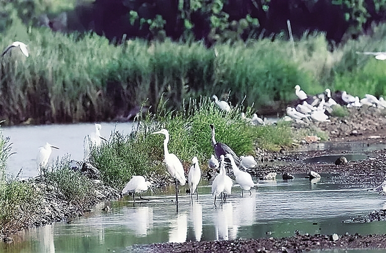 ②各类珍稀鸟儿在湿地伫立休息。 宋金鸿 摄
