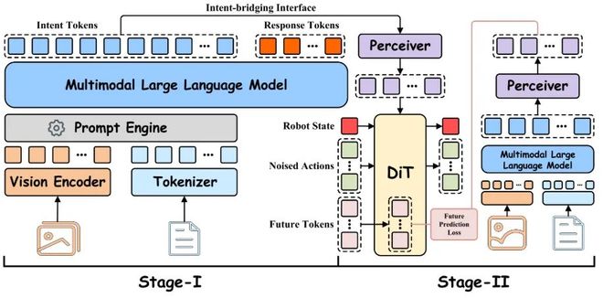 阶段-2提出意图桥接机制,结构化提取多模态语义意图并精准映射至控制模块,打通从理解到执行的闭环路径。