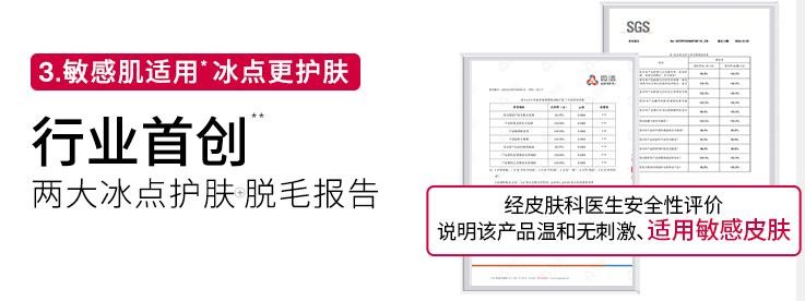 针对用户核心需求,Ulike首创蓝宝石冰点技术,其核心的蓝宝石冰点技术搭配三风道散热专利、VC液冷专利,能精准控制表皮温度,实现无痛脱毛;同时,脱毛仪的能量密度全部满足大于6.5J/cm²的要求,能针对性脱粗硬毛发。以UlikeME为例,UlikeME 此次带来新升级蓝宝石冰点科技,更颠覆性成为湿脱技术先驱。无论湿脱,还是日常干脱模式,都能随心切换。30 分钟 4500 次打光依旧稳定维持 18℃冰点恒温,敏感肌使用起来也很舒服不伤肤;UlikeAir4 搭载的SHR 超级脱毛模式,是美容院百万级专业设备同源的核心技术,不是普通家用仪能比的。再配上高达 7.2J/cm² 的能量密度,连腋下、比基尼区的粗硬毛发都能轻松搞定。实测 4 周使用下来,毛发减少率就达到了 95.8%。此外,Ulike脱毛仪通过了SGS、FDA、KFDA、CE等20多个国家和地区的安全认证,SGS权威检测也进一步佐证了其品质。