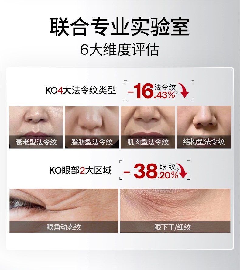 超大导头设计超省心,1提1盖2分钟就能完成全脸护理,不用复杂手法也能坚持。SGS权威检测认证,抬头纹减少38.2%、法令纹体积缩减30.97%,效果真实可查。