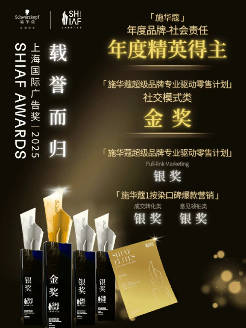作为拥有 127 年历史的美发品牌,施华蔻始终秉持 “让美发生” 的品牌理念,此次获奖涵盖品牌社会责任、社交模式、全链路营销、成交转化等多个维度,全面展现其在品牌建设与市场运营中的综合实力。其中,施华蔻凭借长期以来在社会责任领域的深耕,荣获 “年度品牌社会责任” 与 “年度精英” 双重认可;“施华蔻超级品牌专业驱动零售计划” 表现亮眼,一举拿下 “社交模式类金奖” 与 “Full-link Marketing 银奖”;“施华蔻 1 按染口碑爆款营销” 则凭借出色的市场转化效果与意见领袖联动成果,斩获 “成交转化类银奖” 与 “意见领袖类银奖”。