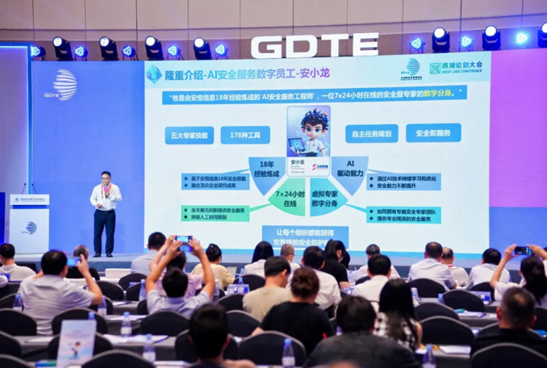 安恒信息AI安全服务数字员工——“安小龙”在全球数贸会上精彩亮相,带来了革命性突破,它是由安恒信息18年网络安全领域经验炼成的“AI安全服务工程师”,也是7x24小时在线的安全服务专家数字分身。