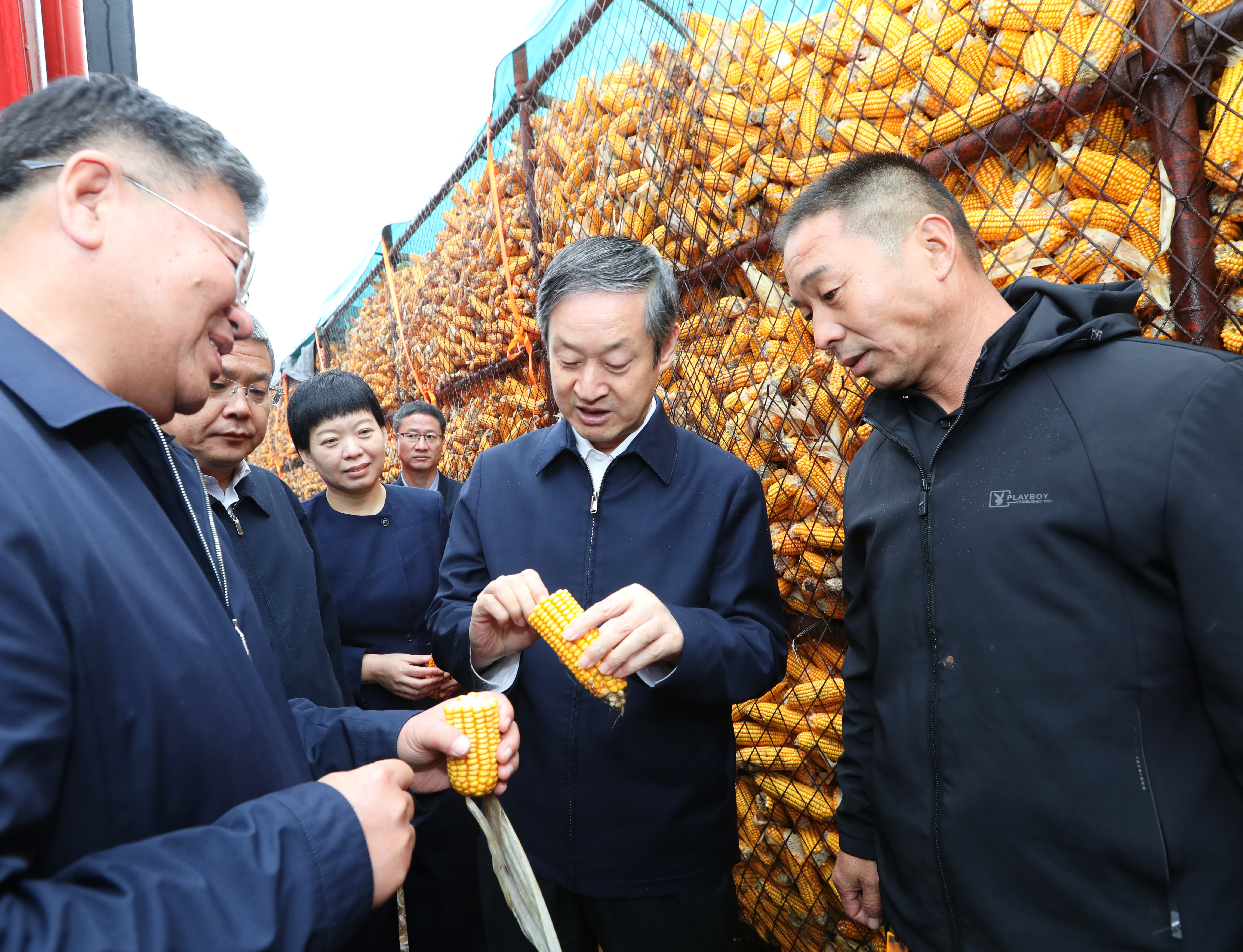 吴晓华一行到市气象局听取近期雨情及未来趋势变化情况汇报,并到桃城区邓庄镇胡家庄村玉米种植地、枣强县马屯镇亿松家庭农场、枣强县农业生产资料有限责任公司,实地了解秋粮收获进度、收购价格、农资储备等情况。吴晓华强调,要深入学习贯彻习近平总书记关于“三农”工作的重要论述,坚决扛牢粮食安全政治责任,抢抓农时、强化服务,确保秋粮应收尽收、秋播种足种好,为全年粮食稳产增产打下坚实基础。要密切关注天气变化,加强雨情墒情动态监测和会商研判,科学防范应对,精准有效施策,努力把连阴雨造成的影响降到最低。要牢牢把握秋季农业生产关键节点,分区分类开展抢收抢烘和收购收储,确保秋粮颗粒归仓、丰收到手。要充分发挥种粮大户、家庭农场、合作社等各类社会化服务主体作用,做好农机具的统筹协调和供需对接,为农民提供机收、晾晒、烘干、仓储等便利化服务,保障粮食品质和农民收益。要压茬推进秋种秋管,保障种子、化肥、农药等农资供应,组织农技人员深入一线,加强技术指导,帮助农民解决实际问题,调动农民种粮积极性,稳定播种面积,提高播种质量。