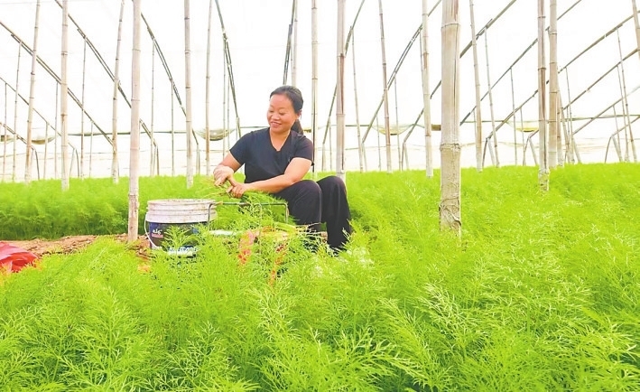 饶阳县大尹村镇吕汉村大棚茴香丰收。