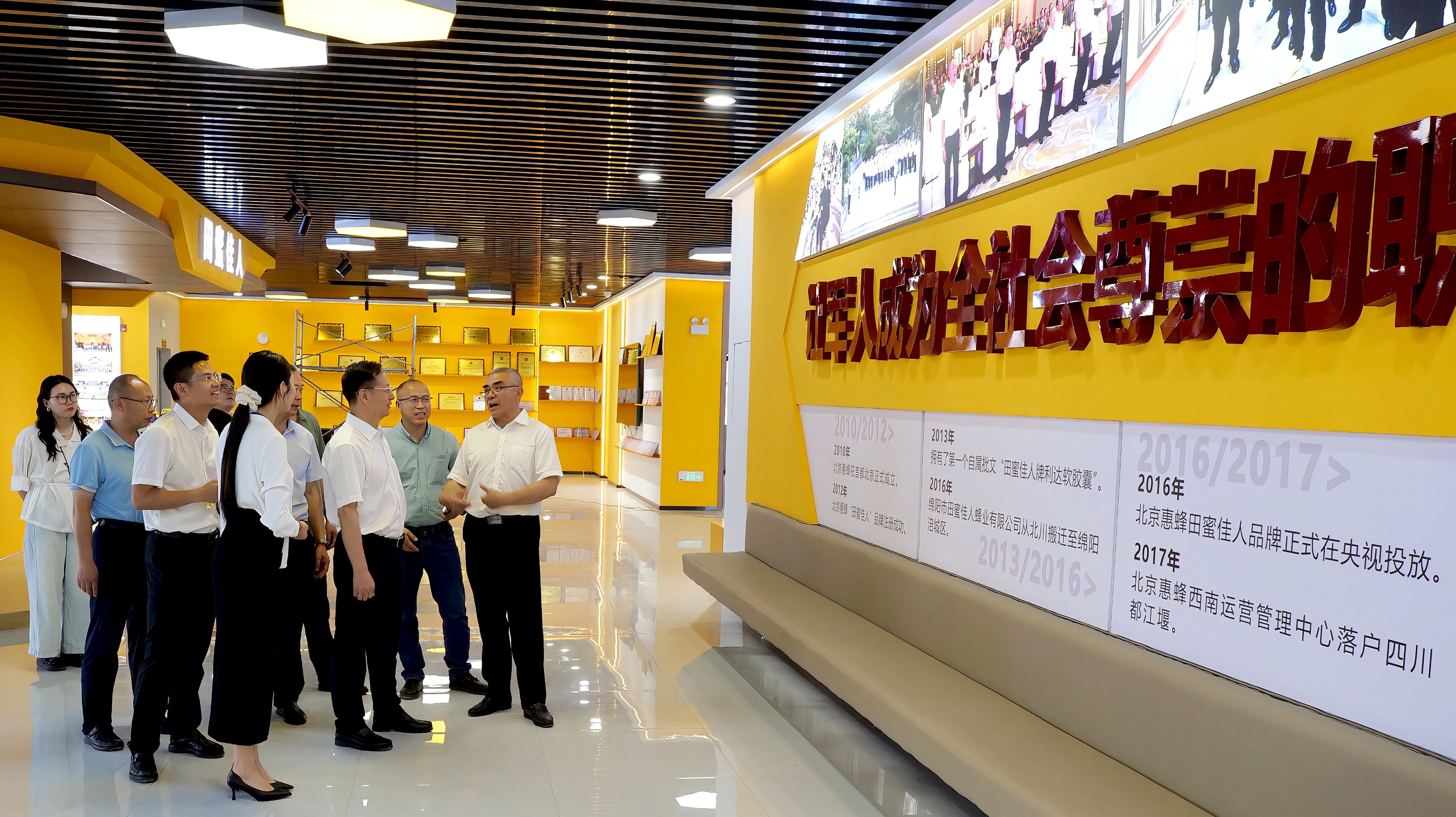 李昊天书记明确质量是发展总抓手,并高度认可北京惠蜂集团作为“退伍军人创办企业”的责任担当。在三楼蜜蜂博物馆,考察组对“文化传播+科普教育+品牌展示”的融合模式给予赞扬,肯定其未来对接中小学研学、助力北川“农旅融合”的创新价值,为企业拓展发展边界提供方向支持。