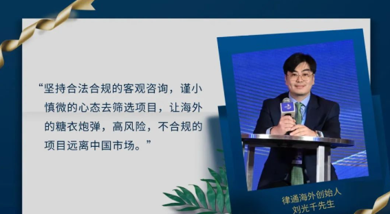 律通海外创始人刘光千先生在各种论坛、峰会以及线上线下活动中多次强调:“移民行业的核心是信任,而信任的基石是合法合规。”他始终倡导以客观、严谨的态度为客户提供咨询服务,并以谨小慎微的心态筛选项目,确保将高风险、不合规的项目挡在中国市场之外。