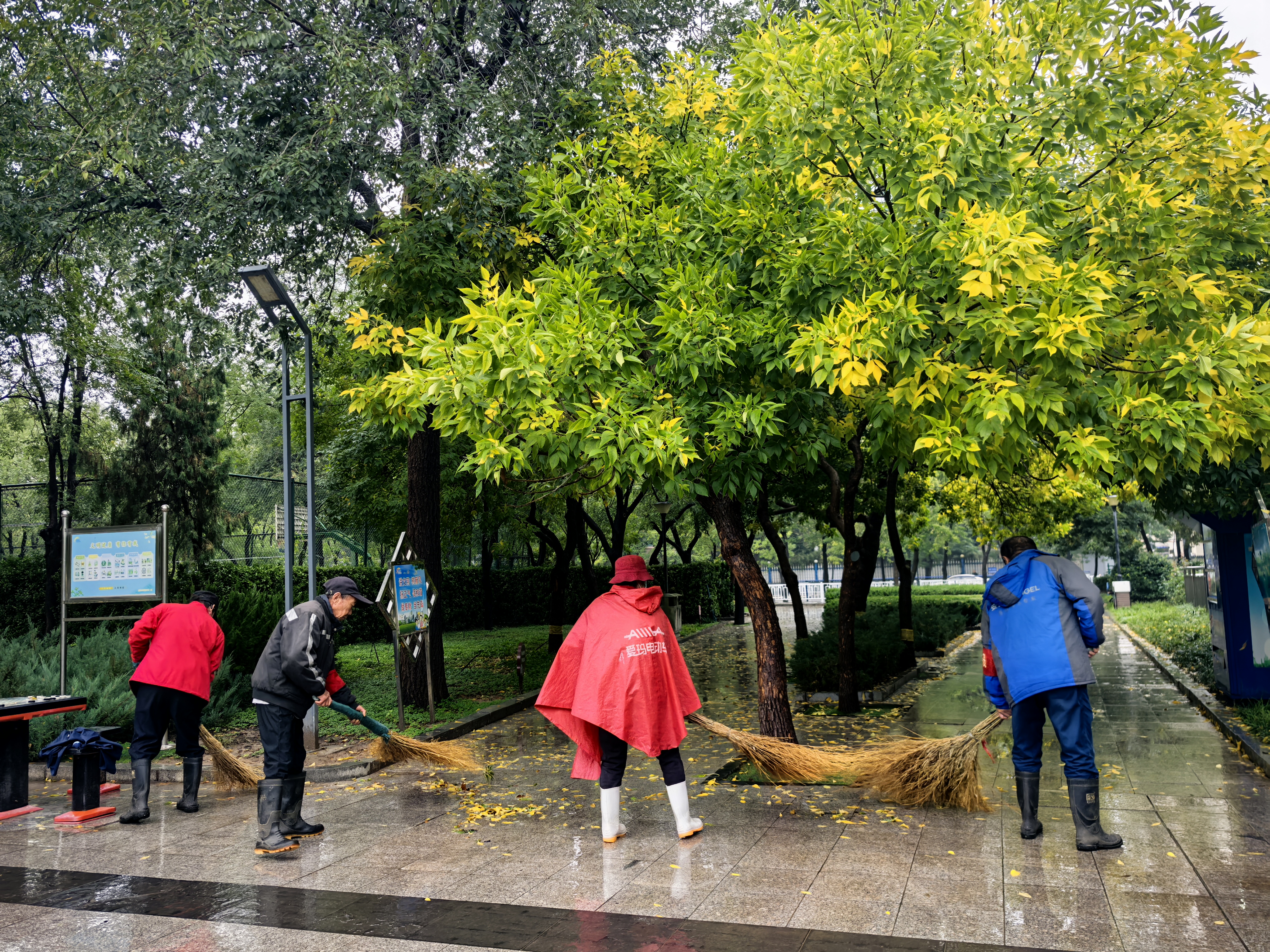 市园林中心实行“日常巡查+雨中不间断巡查+雨后即时核查”模式,绿化管护班组对道路、游园开展拉网式排查,重点检查树木倾斜、根系裸露、绿地积水、枯枝易断等问题,确保隐患早发现、早处置。一方面对胸径大、树冠密或前期有隐患的树木进行支撑加固,增强抗风雨能力。另一方面及时清理倒伏树木、断枝及路面障碍物,恢复道路通畅,同时雨后第一时间清除园区及绿地积水,防止游客滑倒。