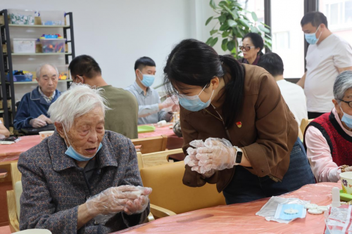 在护理院杨主任的热情陪同下,一场别开生面的包月饼活动在餐厅热闹展开。志愿者们早有准备,月饼食材与模具一一呈上。老人们与志愿者们围坐在一起,瞬间,这里变成了一个充满欢乐与温情的“月饼工坊”。和面的双手沾满面粉,却揉出团圆的形状;拌馅的勺子搅动着甜蜜,似在搅拌生活的美好。大家齐心协力,将馅料填入面皮,轻轻放入模具,按压出精美的月饼,每一个步骤都饱含着对传统节日的敬意,每一块月饼都承载着浓浓的情谊。在制作月饼的过程中,欢声笑语交织,老人们分享着往昔岁月的故事,志愿者们倾听着他们的人生阅历,点滴话语间,是两代人心灵的交融,敬老院里弥漫着节日独有的浓厚氛围,宛如一个温馨的大家庭。