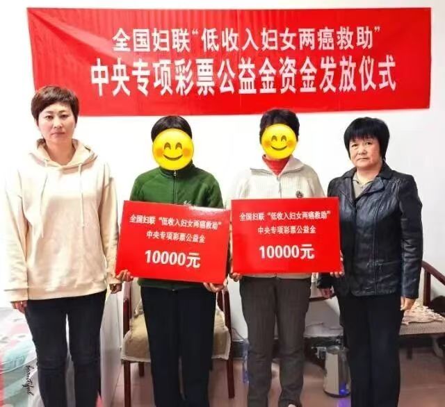 为进一步关爱困境妇女健康,纾解“两癌”患病低收入妇女生活压力,真正把妇联“娘家人”的温暖送到“两癌”患病低收入妇女的身边,10月10日,饶阳县妇联举行全国妇联“低收入妇女两癌救助”——中央专项彩票公益金资金发放仪式,为2名符合救助条件的低收入“两癌”患病妇女发放救助金各1万元。