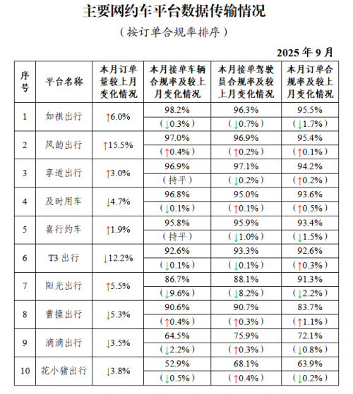 10月10日,交通运输部网约车监管信息交互系统发布2025年9月份网约车行业运行基本情况,如祺出行9月订单合规率再次录得全国最高,至今已累计26次名列第一。此外,如祺出行已连续6个月录得订单量环比正增长。