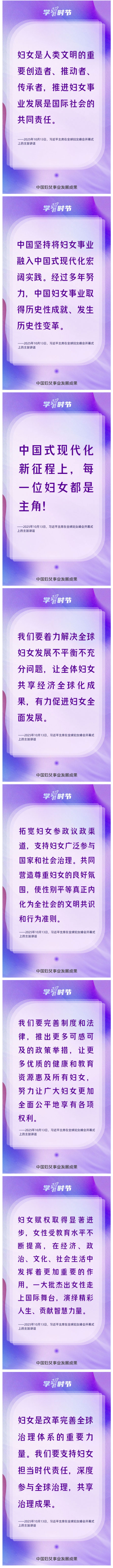 自1995年承办联合国第四次世界妇女大会后,我国坚定落实《北京宣言》《行动纲领》,始终是全球妇女事业重要参与者、推动者、引领者。进入新时代,我国妇女发展水平全方位跃升,为全球提供了中国样本。