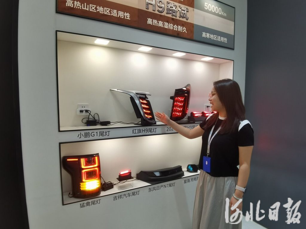 “我们生产的汽车尾灯采用了新一代显示技术OLED作为光源,不仅能显示文字、动画,还能呈现裸眼3D效果。”固安翌光科技有限公司项目经理高盼将自主研发的红旗H9车型OLED尾灯展示给记者看。