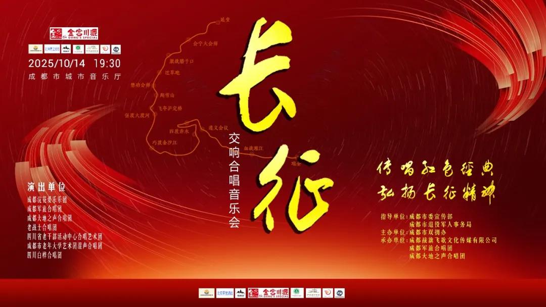 10月14日晚,“传唱红色经典·弘扬长征精神”大型交响合唱音乐会在成都城市音乐厅震撼奏响。作为本次活动的重要支持单位,金宫川派味业以高度的文化自觉和社会责任感,积极参与并组织员工代表到场观演,金宫川派味业董事长龚永泽先生更亲自出席,与社会各界共同致敬伟大长征精神,感悟红色文化力量。