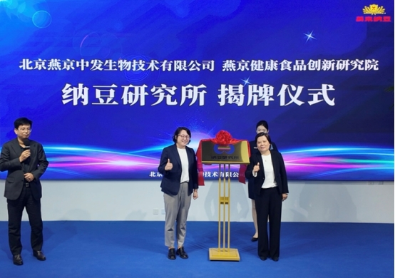 启动仪式上,北京燕京啤酒股份有限公司总工程师兼技术研发中心总经理宋玉梅及燕京健康食品创新研究院院长付晓芬为“纳豆研究所”揭牌。