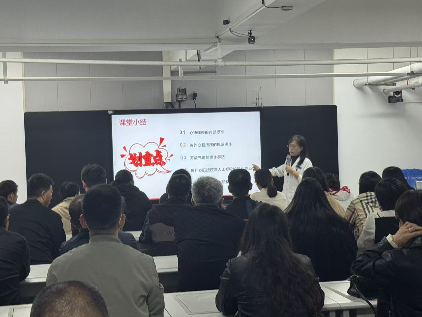 “外伤救护有四招,止血、包扎、固定、搬运一步都不能少!”“心肺复苏按压时,掌根要牢牢贴紧胸部中央,垂直向下发力,频率得稳住每分钟100到120次!”……10月16日上午,衡水市第四人民医院的培训教室里,传出阵阵清晰的讲解声。由衡水市交通运输行业党委联合衡水市第四人民医院共同举办的急救技能培训,正为全市道路运输行业企业代表“充电赋能”。
