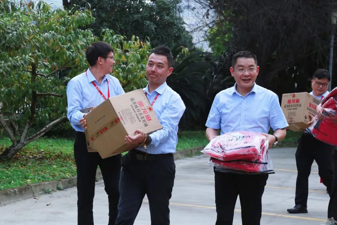 现场,在主持人引导下,双方进行了物资交接仪式。龚永泽董事长将象征爱心的捐赠物资移交到四川广播电视台驻村工作队队长李强手中,并与到场嘉宾共同合影留念。全体人员参与装车,圆满完成捐赠环节。